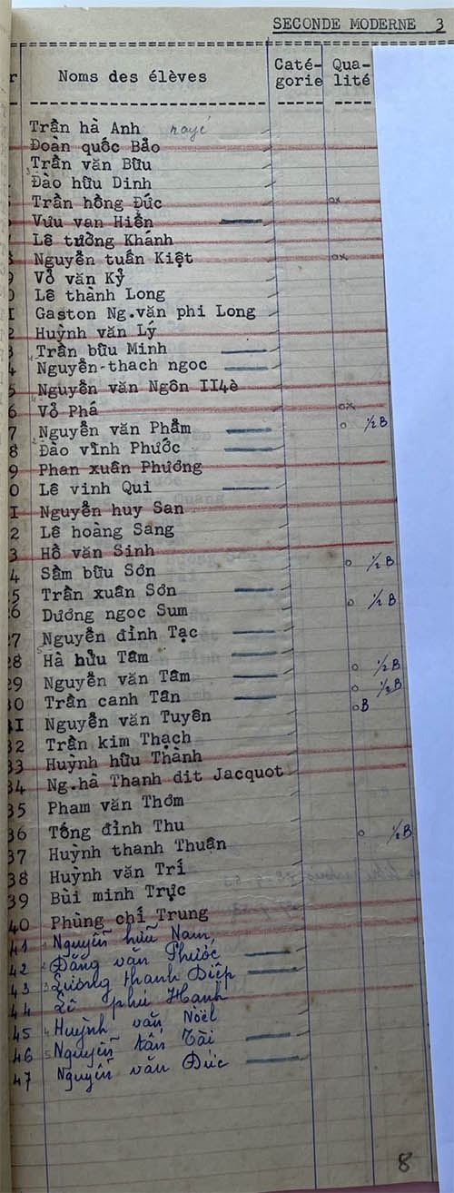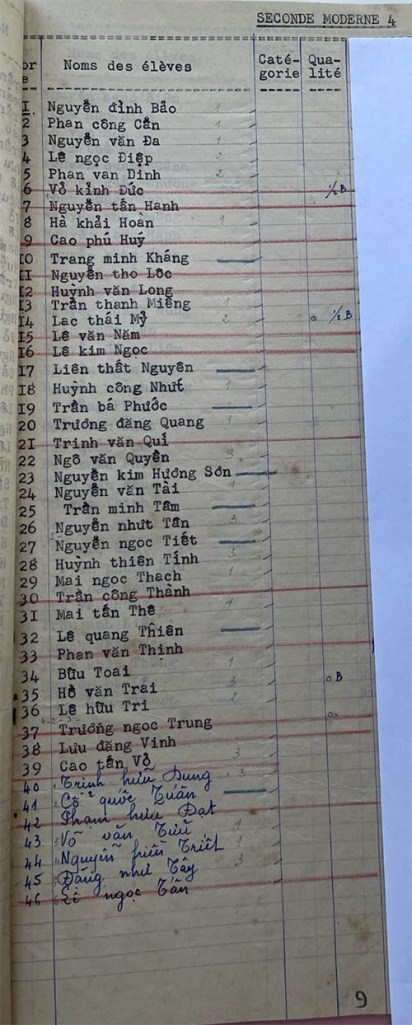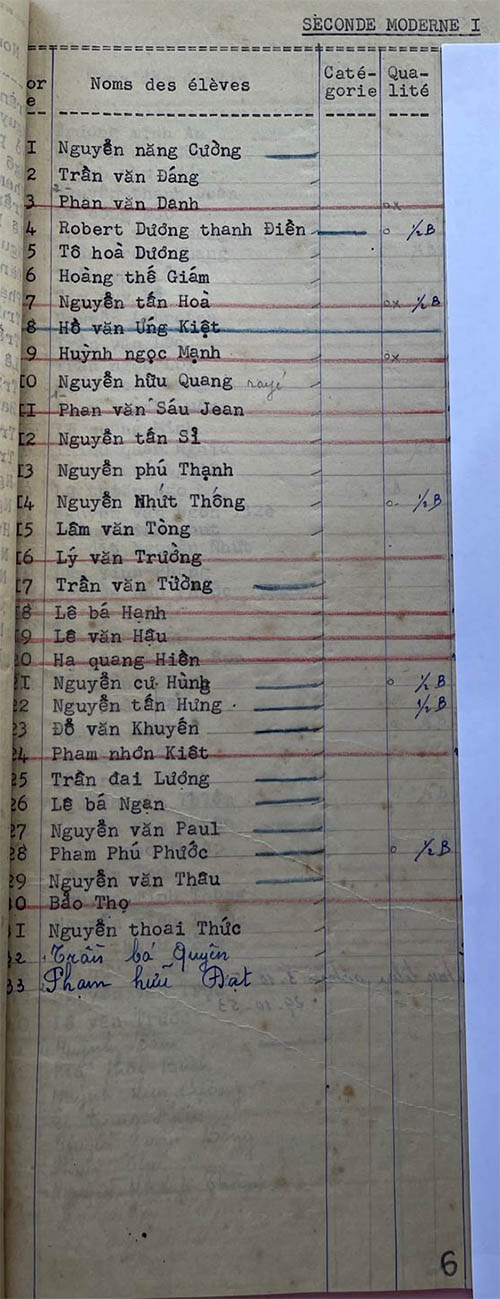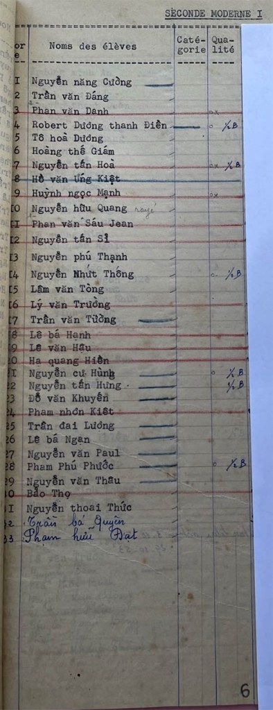 Danh sách học sinh các lớp trong năm học 1953-54 tại trường trung học Petrus Trương Vĩnh Ký