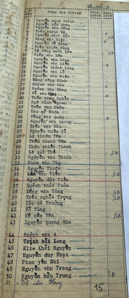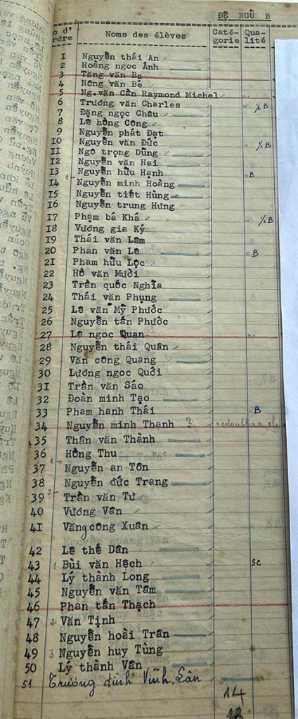 Danh sách học sinh các lớp trong năm học 1954-55 tại trường trung học Petrus Trương vĩnh Ký Lớp Đệ ngũ Lớp Đệ ngũ A Lớp Đệ ngũ B Lớp Đệ ngũ C Lớp Đệ ngũ D Lớp Đệ ngũ E Share this: Share on X (Opens in new window) X Share on Facebook (Opens in new window) Facebook Like Loading...
