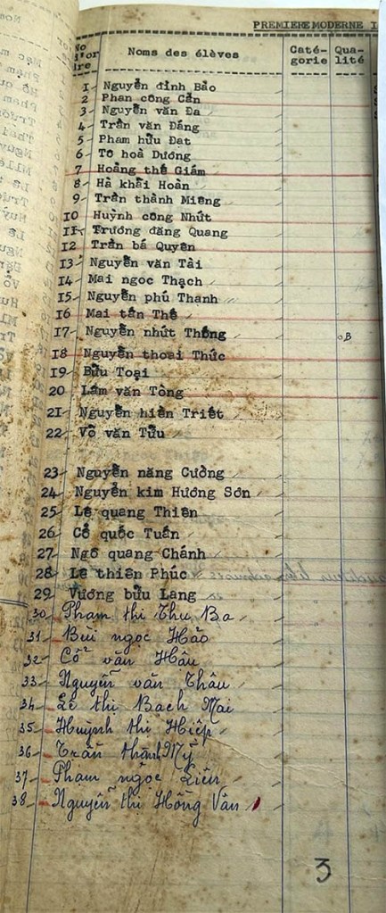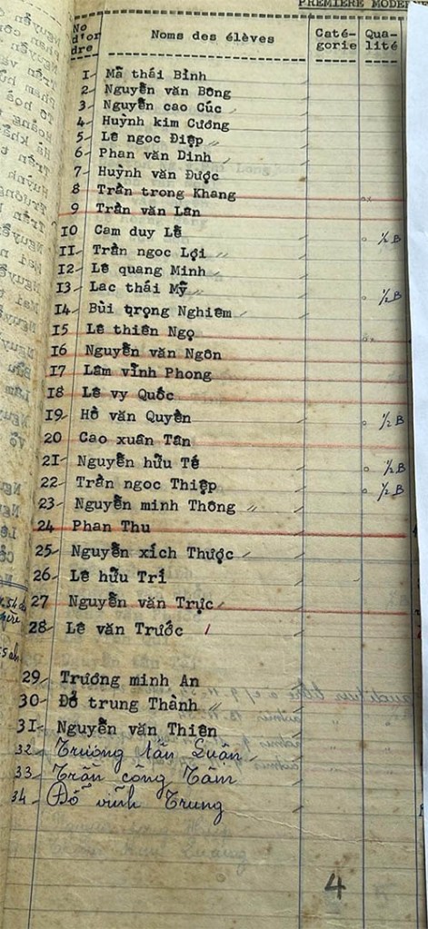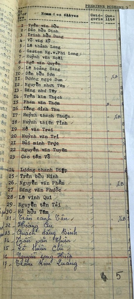 Danh sách học sinh các lớp trong năm học 1954-55 tại trường trung học Petrus Trương vĩnh Ký