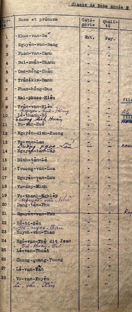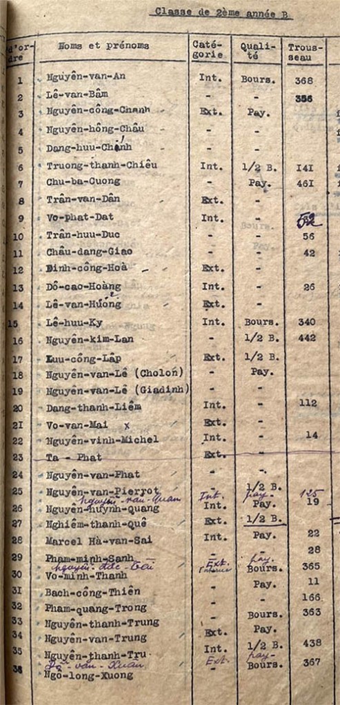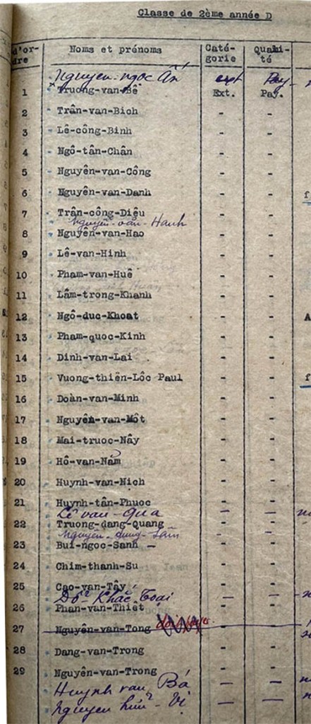 Danh sách học sinh các lớp trong năm học 1941-42 tại trường trung học Petrus Trương Vĩnh Ký Classes de 2ème année Classe de 2ème année A Classe de 2ème année B Classe de 2ème année C Classe de 2ème année D Classe de 2ème année E Share this: Share on X (Opens in new window) X Share on Facebook (Opens in new window) Facebook Like Loading...
