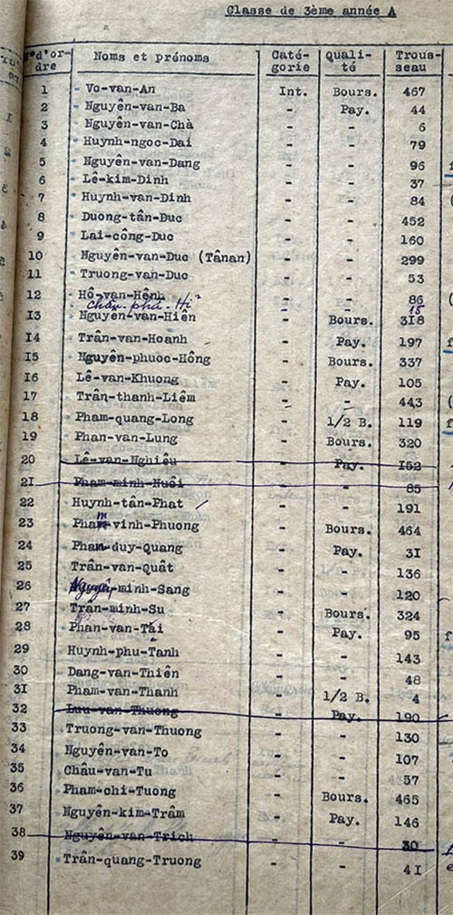 Danh sách học sinh các lớp trong năm học 1941-42 tại trường trung học Petrus Trương Vĩnh Ký