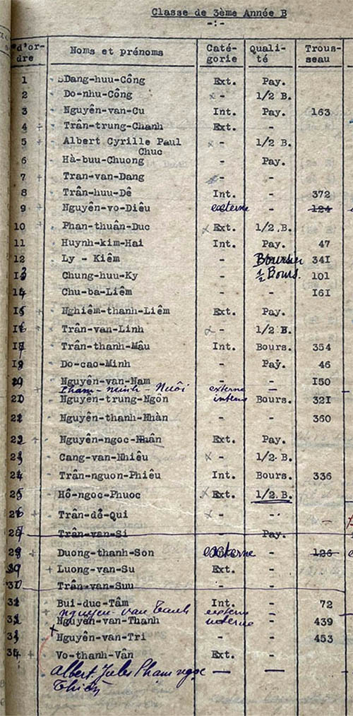 Danh sách học sinh các lớp trong năm học 1941-42 tại trường trung học Petrus Trương Vĩnh Ký