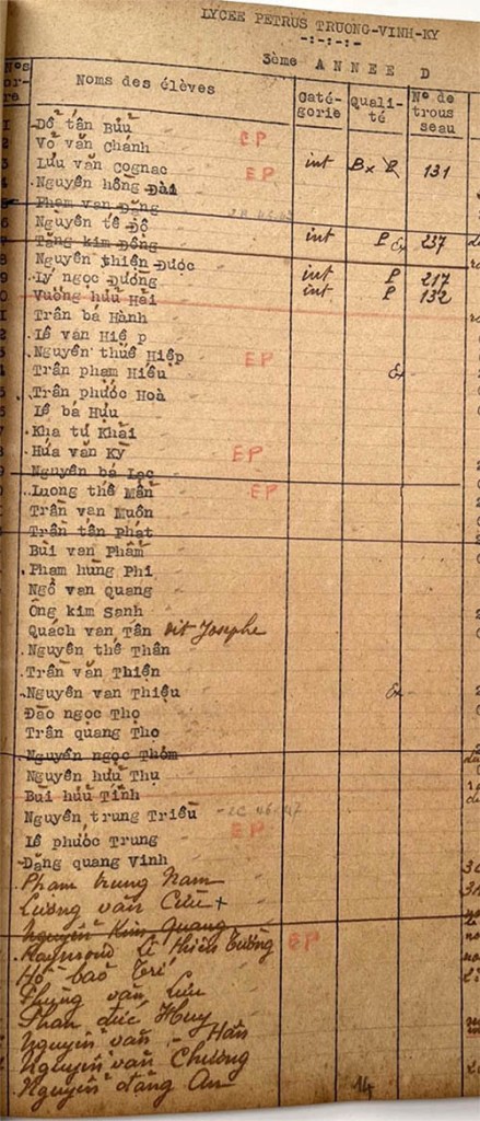 Danh sách học sinh các lớp trong năm học 1948-49 tại trường trung học Petrus Trương Vĩnh Ký Classes de 3ème année Lớp 3ème année A Lớp 3ème année B Lớp 3ème année C Lớp 3ème année D Share this: Click to share on X (Opens in new window) X Click to share on Facebook (Opens in new window) Facebook Like Loading...