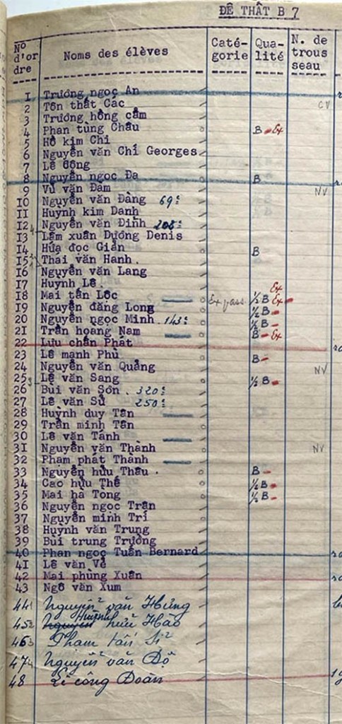 Danh sách học sinh các lớp trong năm học 1951-52 tại trường trung học Petrus Trương Vĩnh Ký Lớp Đệ Thất Lớp Đệ Thất B 1 Lớp Đệ Thất B 2 Lớp Đệ Thất B 3 Lớp Đệ Thất B 4 Lớp Đệ Thất B 5 Lớp Đệ Thất B 6 Lớp Đệ Thất B 7 Lớp Đệ Thất B 8 Share this: Share on X (Opens in new window) X Share on Facebook (Opens in new window) Facebook Like Loading...