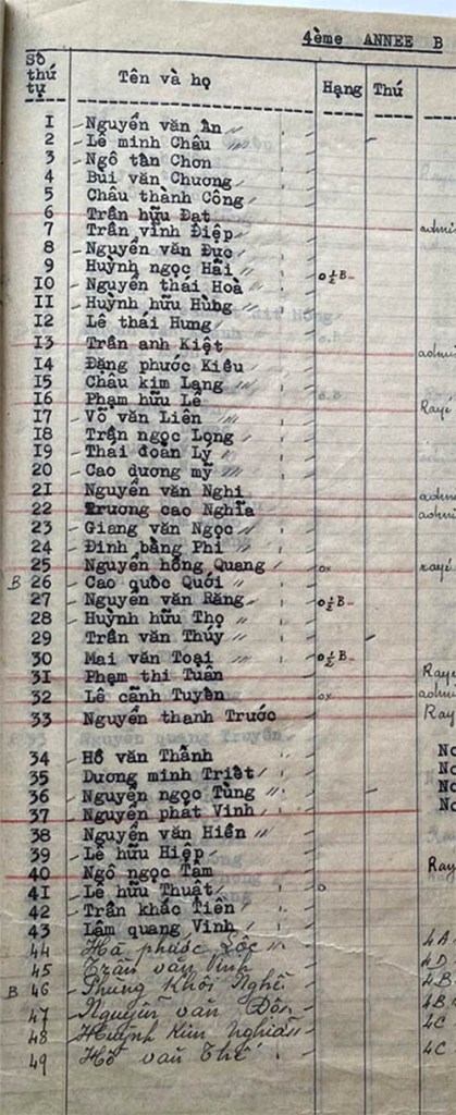 Danh sách học sinh các lớp trong năm học 1955-56 tại trường trung học Petrus Trương Vĩnh Ký Lớp 4ème Année Lớp 4ème Année A Lớp 4ème Année B Lớp 4ème Année C Share this: Click to share on X (Opens in new window) X Click to share on Facebook (Opens in new window) Facebook Like Loading...