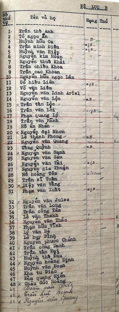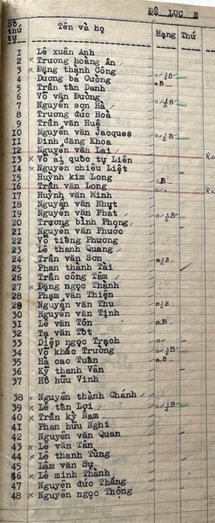 Danh sách học sinh các lớp trong năm học 1955-56 tại trường trung học Petrus Trương Vĩnh Ký Lớp Đệ Lục Lớp Đệ Lục A Lớp Đệ Lục B Lớp Đệ Lục C Lớp Đệ Lục D Lớp Đệ Lục E Lớp Đệ Lục F Lớp Đệ Lục G Lớp Đệ Lục H Lớp Đệ Lục I (Hán Văn) Share this: Click to share on X (Opens in new window) X Click to share on Facebook (Opens in new window) Facebook Like Loading...