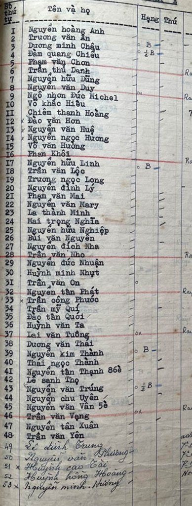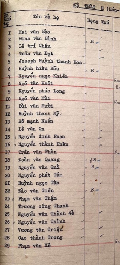 Danh sách học sinh các lớp trong năm học 1955-56 tại trường trung học Petrus Trương Vĩnh Ký Lớp Đệ Thất Lớp Đệ Thất A Lớp Đệ Thất B Lớp Đệ Thất C Lớp Đệ Thất D Lớp Đệ Thất E Lớp Đệ Thất F Lớp Đệ Thất G Lớp Đệ Thất H (Hán Văn) Share this: Share on X (Opens in new window) X Share on Facebook (Opens in new window) Facebook Like Loading...