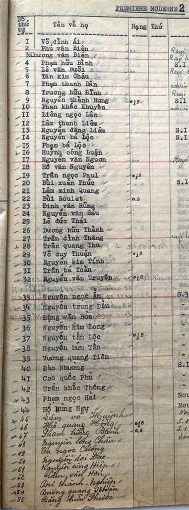 Danh sách học sinh các lớp trong năm học 1955-56 tại trường trung học Petrus Trương Vĩnh Ký Lớp Première Moderne Lớp Première Moderne I (Anc. S.M.2) Lớp Première Moderne I (Suite) Lớp Première Moderne II (Anc. S.M.2) Lớp Première Moderne II (Suite) Share this: Click to share on X (Opens in new window) X Click to share on Facebook (Opens in new window) Facebook Like Loading...