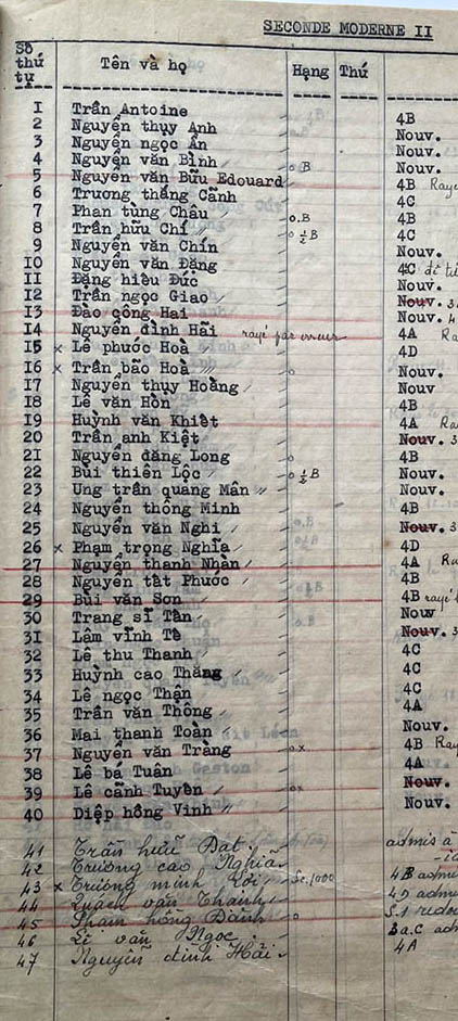 Danh sách học sinh các lớp trong năm học 1955-56 tại trường trung học Petrus Trương Vĩnh Ký Lớp Seconde Moderne Lớp Second Moderne I Lớp Second Moderne I (Suite) Lớp Second Moderne II Lớp Second Moderne II (Suite) Share this: Share on X (Opens in new window) X Share on Facebook (Opens in new window) Facebook Like Loading...