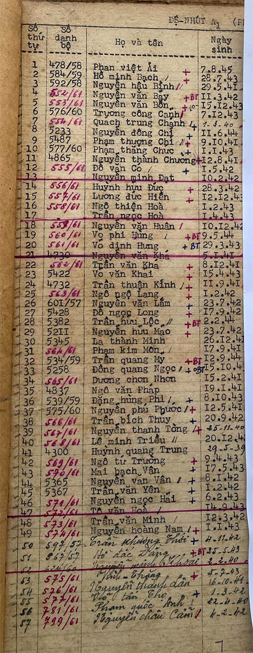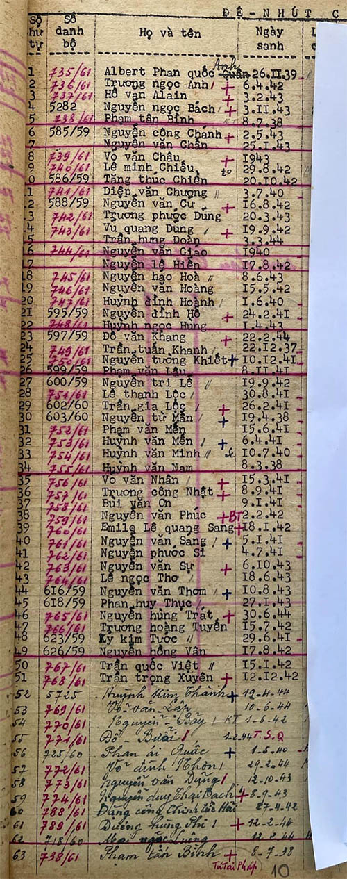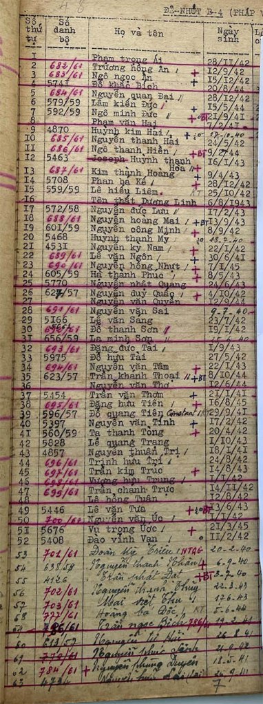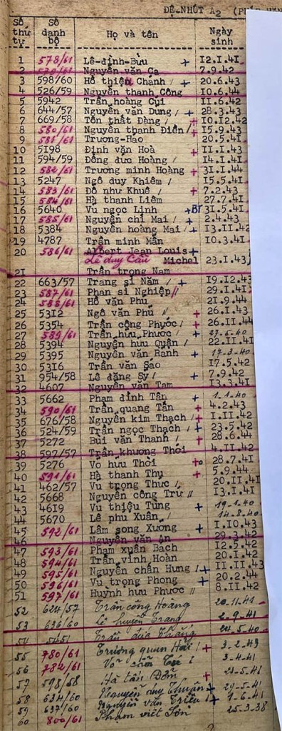 Danh sách học sinh các lớp trong năm học 1961-62 tại trường trung học Petrus Trương Vĩnh Ký