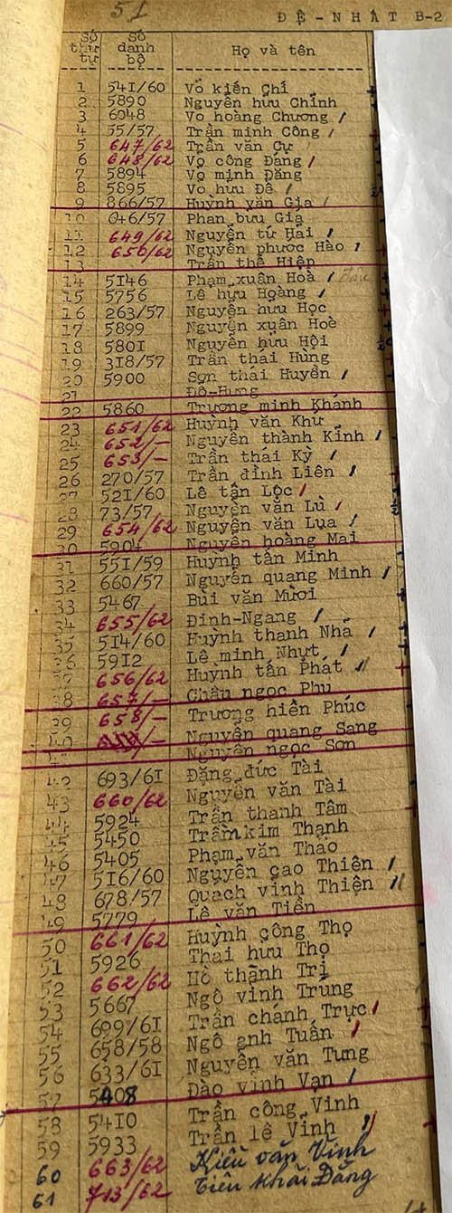 Danh sách học sinh các lớp trong năm học 1962-63 tại trường trung học Petrus Trương Vĩnh Ký