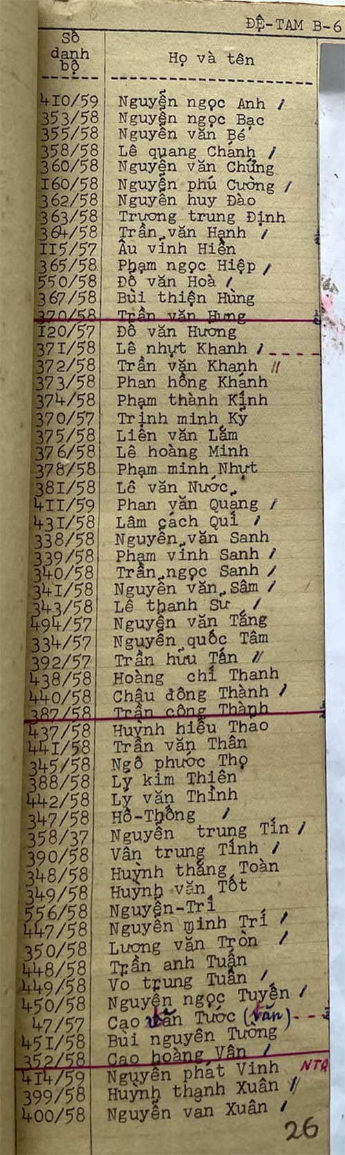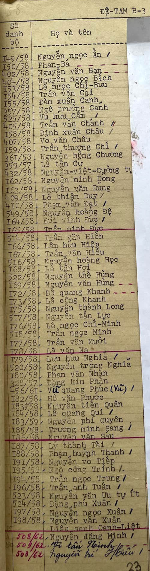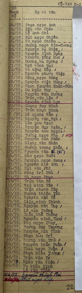 Danh sách học sinh các lớp trong năm học 1962-63 tại trường trung học Petrus Trương Vĩnh Ký Danh sách các lớp Đệ tam Lớp Đệ tam A1 Lớp Đệ tam A2 Lớp Đệ tam B1 Lớp Đệ tam B2 Lớp Đệ tam B3 Lớp Đệ tam B4 Lớp Đệ tam B5 Lớp Đệ tam B6 Lớp Đệ tam C Share this: Share on X (Opens in new window) X Share on Facebook (Opens in new window) Facebook Like Loading...