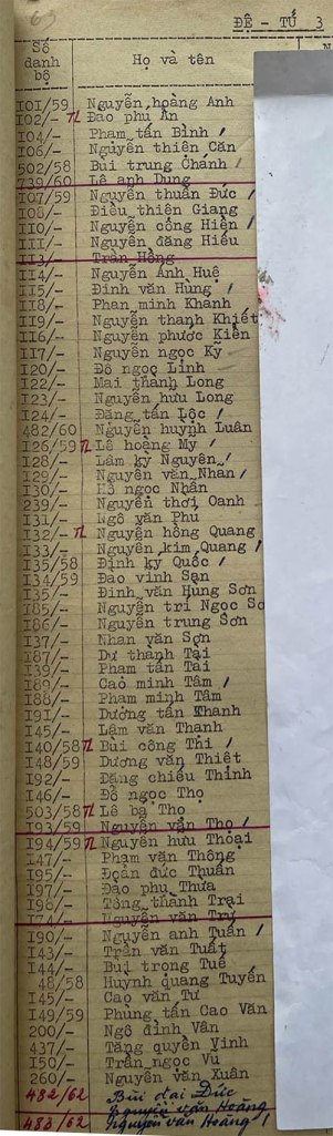 Danh sách học sinh các lớp trong năm học 1962-63 tại trường trung học Petrus Trương Vĩnh Ký Danh sách các lớp Đệ tứ Lớp Đệ tứ 1 Lớp Đệ tứ 2 Lớp Đệ tứ 3 Lớp Đệ tứ 4 Lớp Đệ tứ 5 Lớp Đệ tứ 6 Lớp Đệ tứ 7 Lớp Đệ tứ 8 Share this: Share on X (Opens in new window) X Share on Facebook (Opens in new window) Facebook Like Loading...