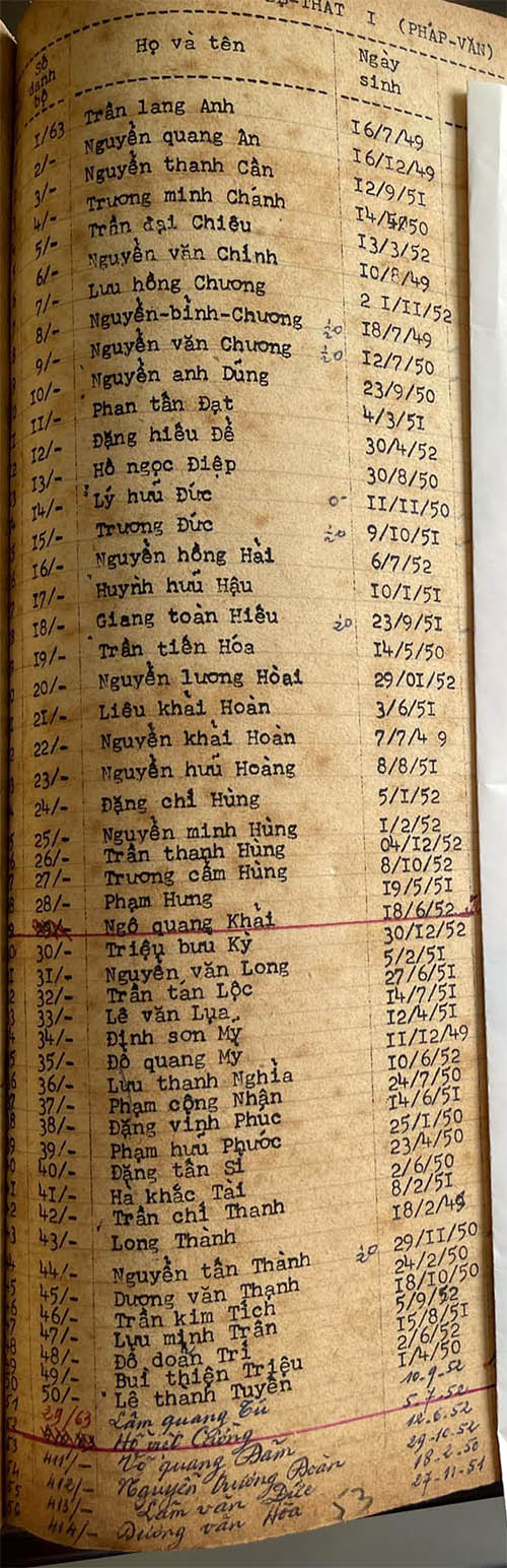 Danh sách học sinh các lớp trong năm học 1963-64 tại trường trung học Petrus Trương Vĩnh Ký