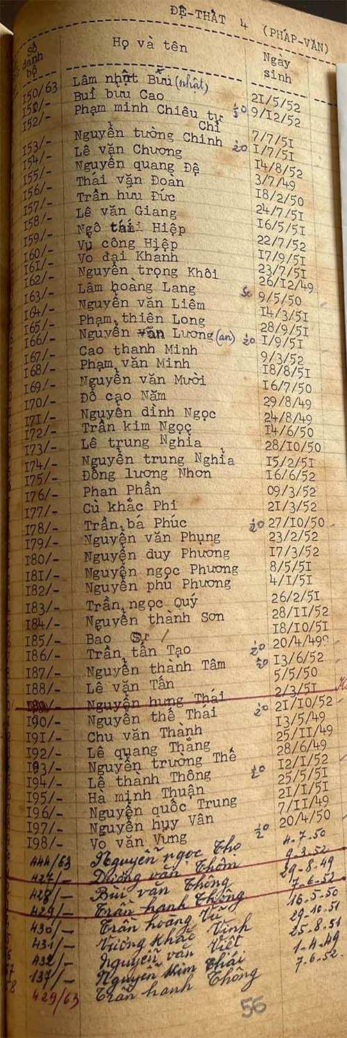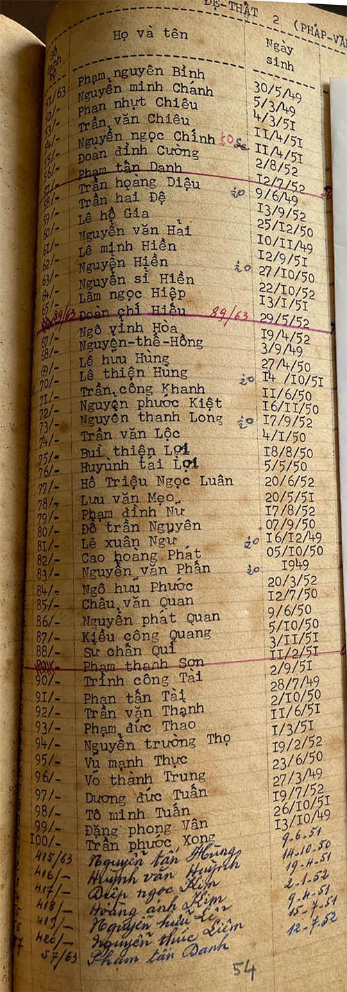 Danh sách các lớp Đệ thất