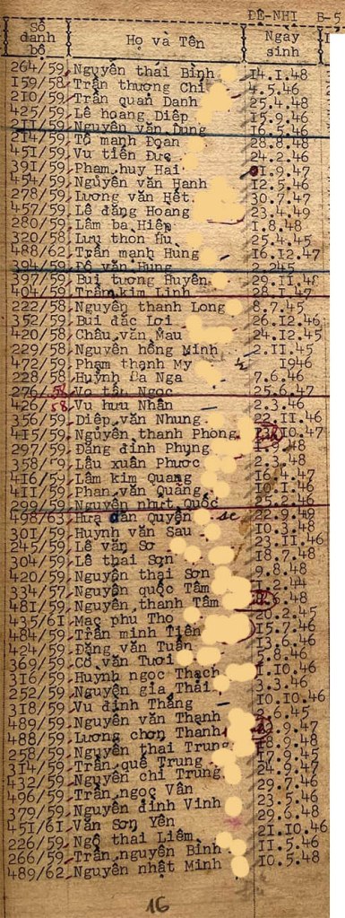 Danh sách học sinh các lớp trong năm học 1964-65 tại trường trung học Petrus Trương Vĩnh Ký Danh sách các lớp Đệ nhị Lớp Đệ nhị A1 Lớp Đệ nhị A2 Lớp Đệ nhị B1 Lớp Đệ nhị B2 Lớp Đệ nhị B3 Lớp Đệ nhị B4 Lớp Đệ nhị B5 Lớp Đệ nhị B6 Lớp Đệ nhị C Share this: Click to share on X (Opens in new window) X Click to share on Facebook (Opens in new window) Facebook Like Loading...