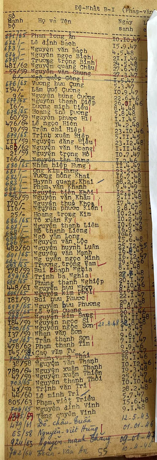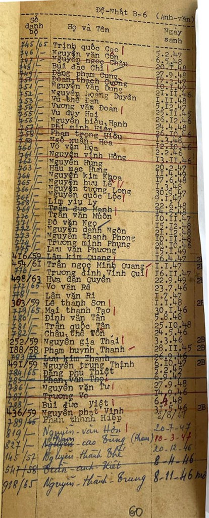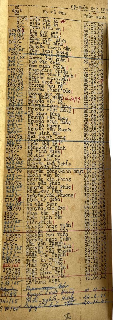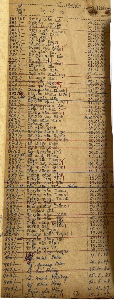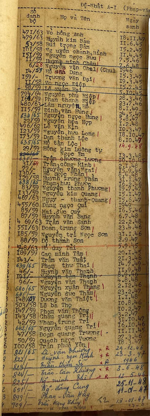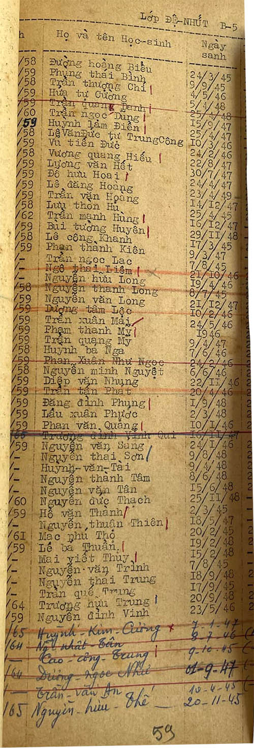 Danh sách học sinh các lớp trong năm học 1965-66 tại trường trung học Petrus Trương Vĩnh Ký