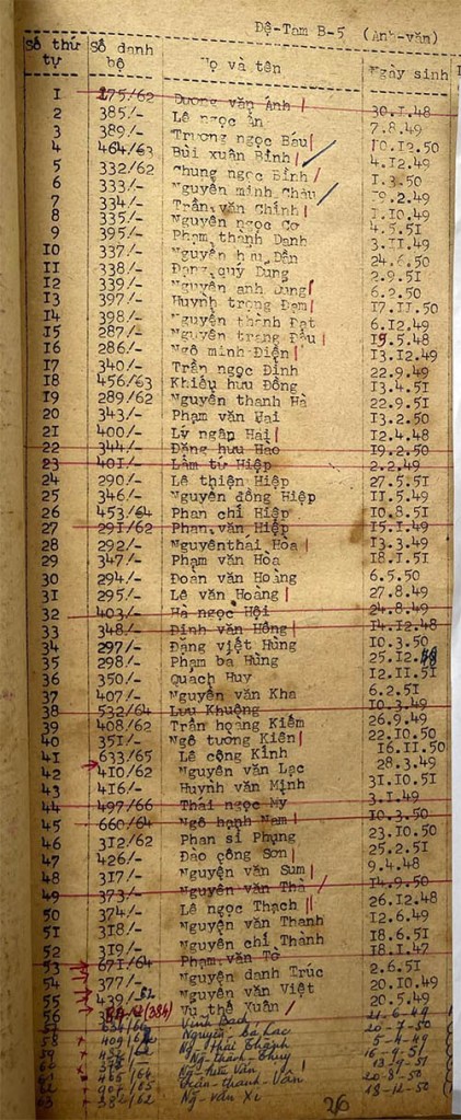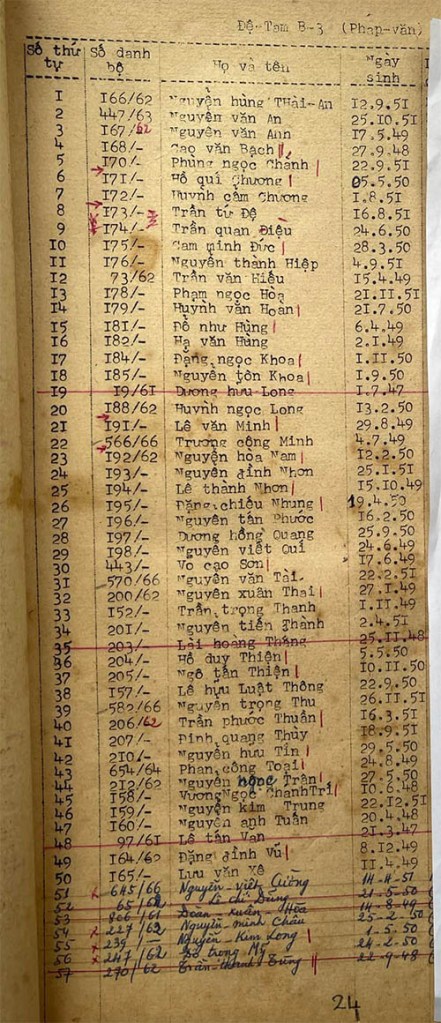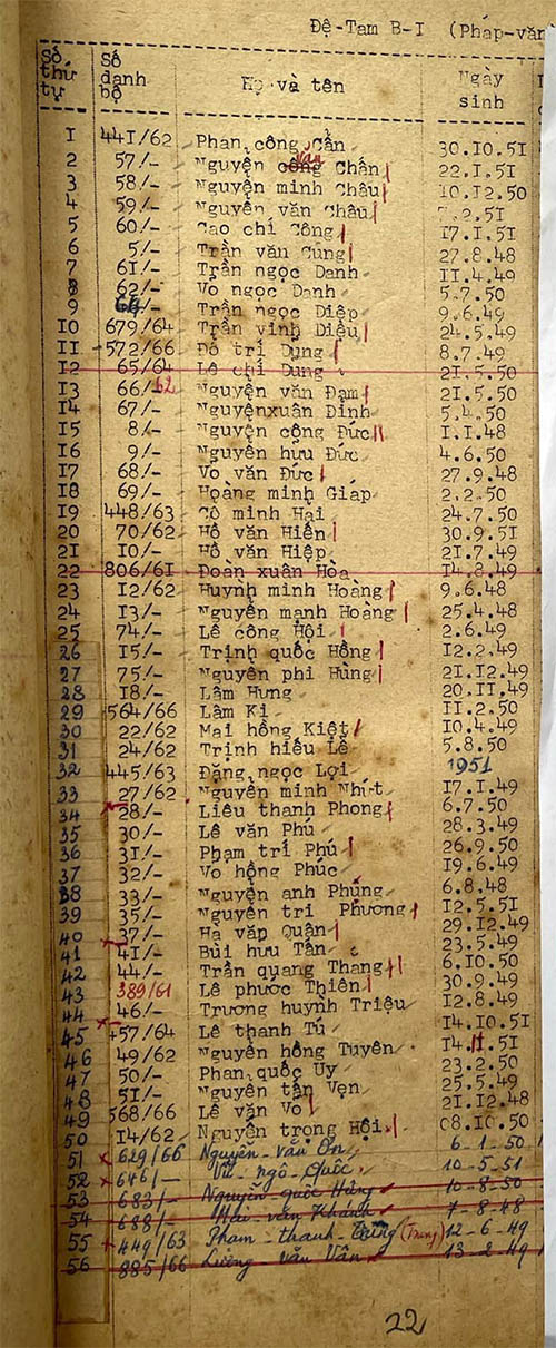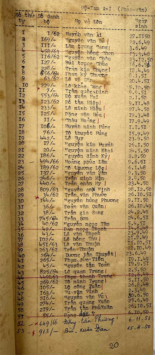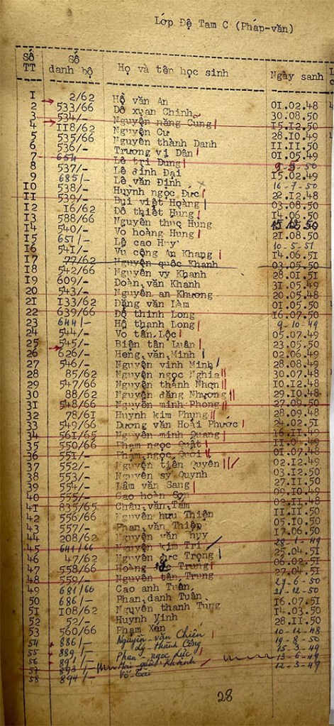 Danh sách học sinh các lớp trong năm học 1966-67 tại trường trung học Petrus Trương Vĩnh Ký