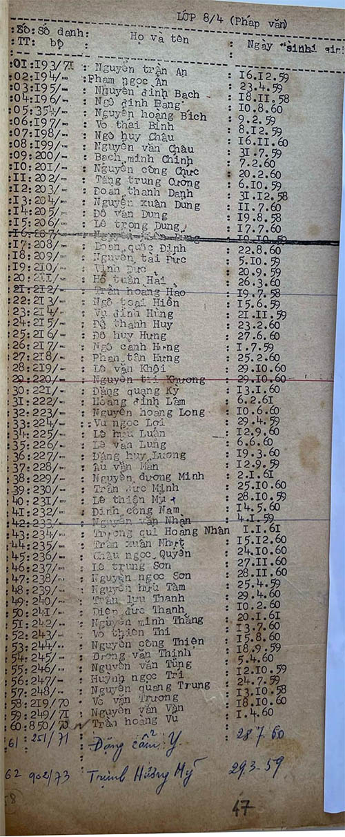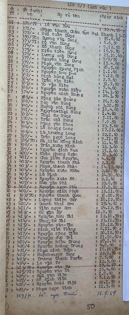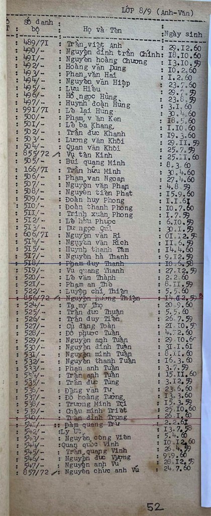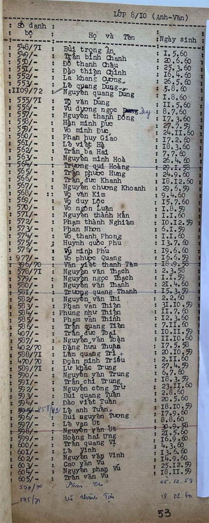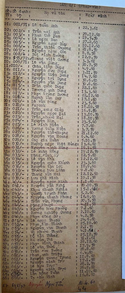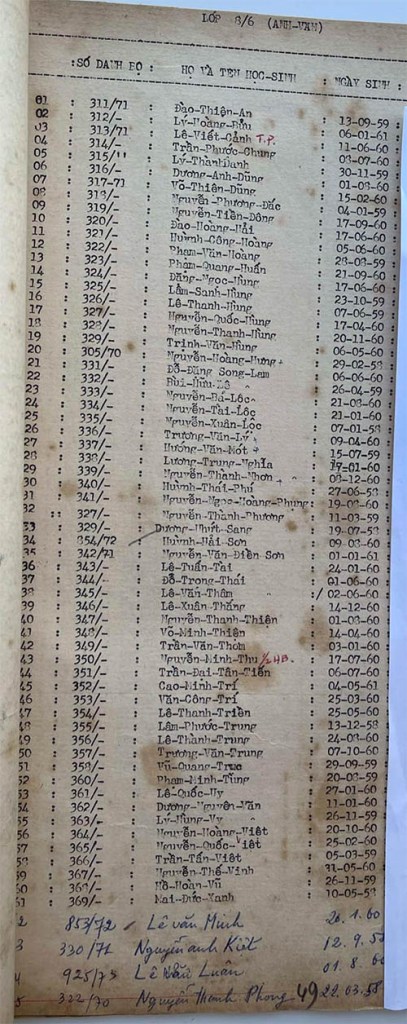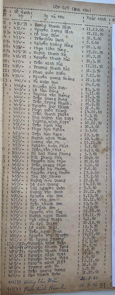 Danh sách học sinh các lớp trong năm học 1973-74 tại trường trung học Petrus Trương Vĩnh Ký Danh sách các lớp 8 Lớp 8/1 Lớp 8/2 Lớp 8/2 (Mặt sau) Lớp 8/3 Lớp 8/4 Lớp 8/5 Lớp 8/5 (Mặt sau) Lớp 8/6 Lớp 8/7 Lớp 8/8 Lớp 8/9 Lớp 8/10 Share this: Share on X (Opens in new window) X Share on Facebook (Opens in new window) Facebook Like Loading...