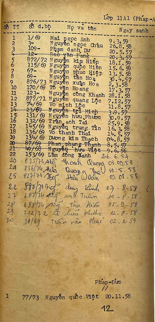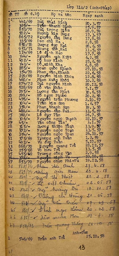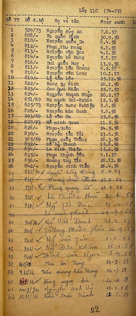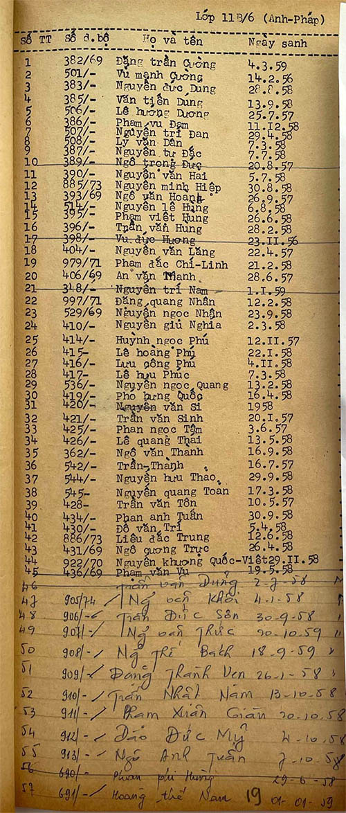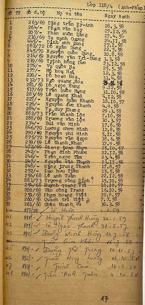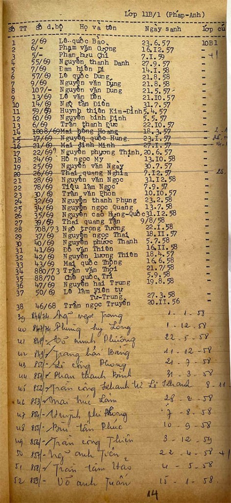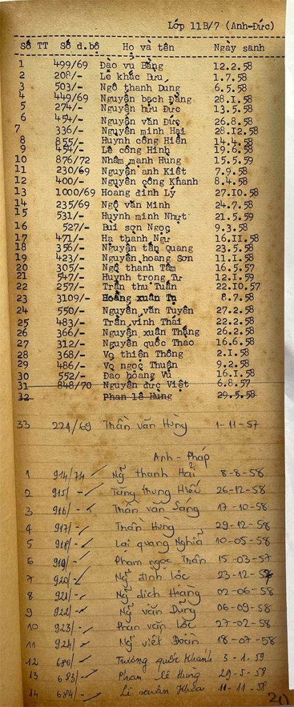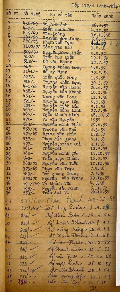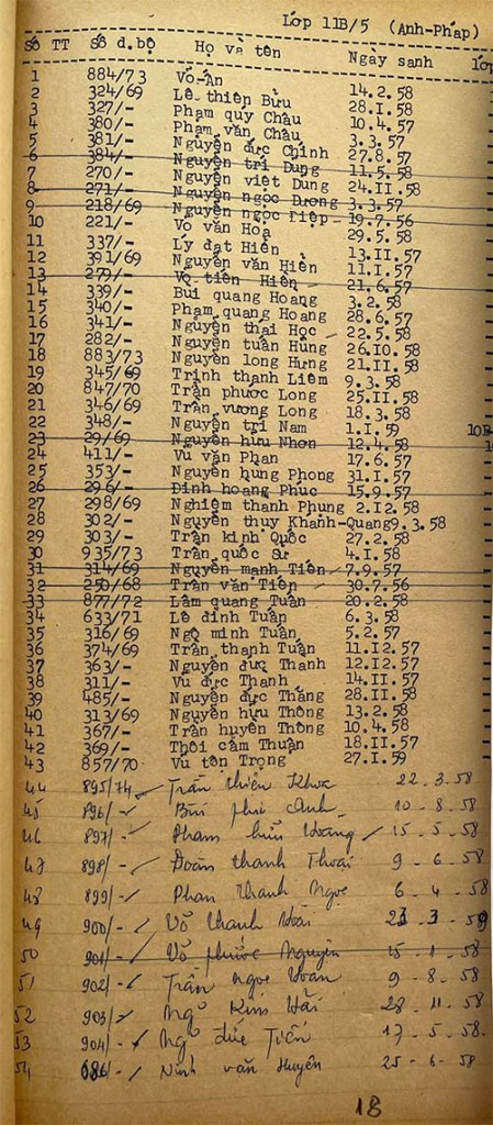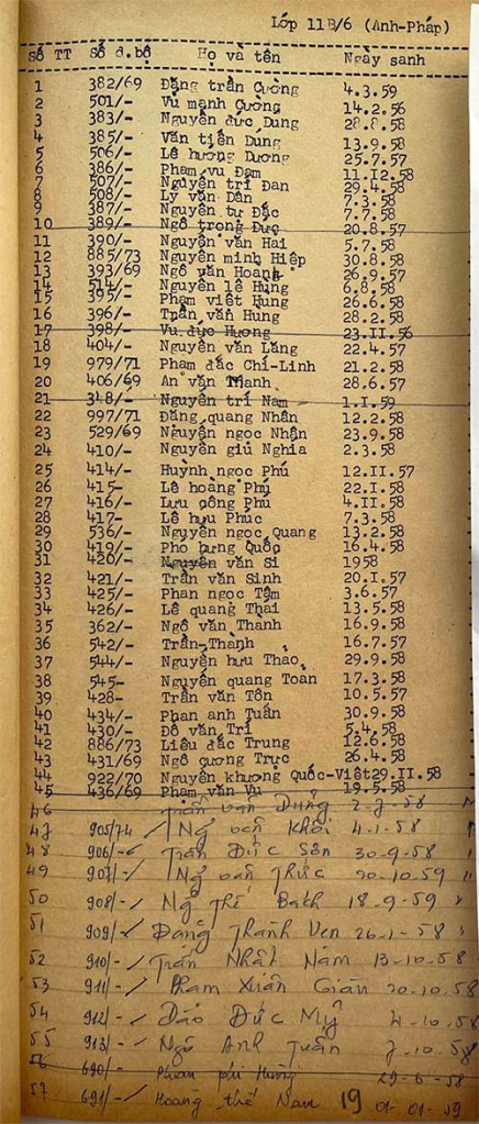 Danh sách học sinh các lớp trong năm học 1974-75 tại trường trung học Petrus Trương Vĩnh Ký Danh sách các lớp 11 Lớp 11 A1 Lớp 11 A2 Lớp 11 B1 Lớp 11 B2 Lớp 11 B3 Lớp 11 B4 Lớp 11 B5 Lớp 11 B6 Lớp 11 B7 Lớp 11 B8 Lớp 11 C Share this: Share on X (Opens in new window) X Share on Facebook (Opens in new window) Facebook Like Loading...