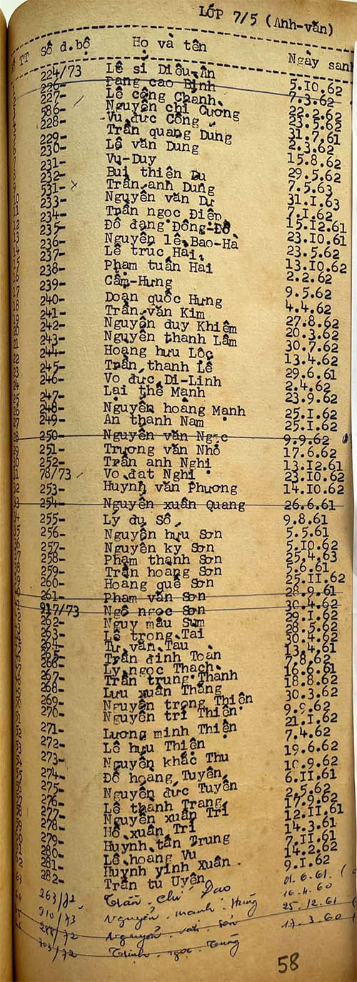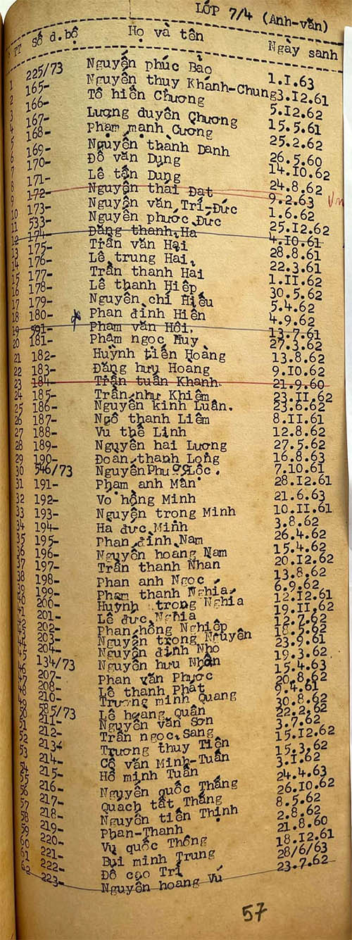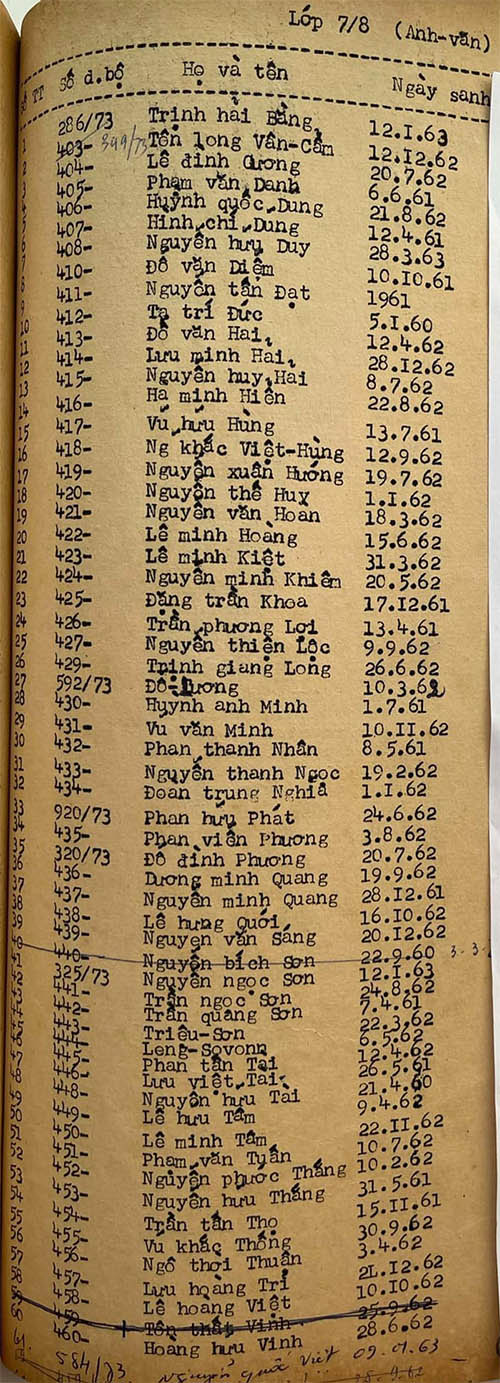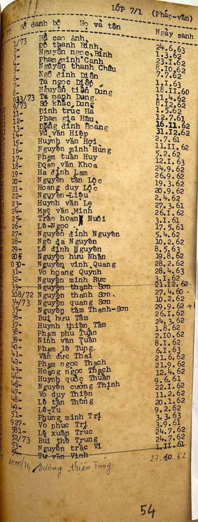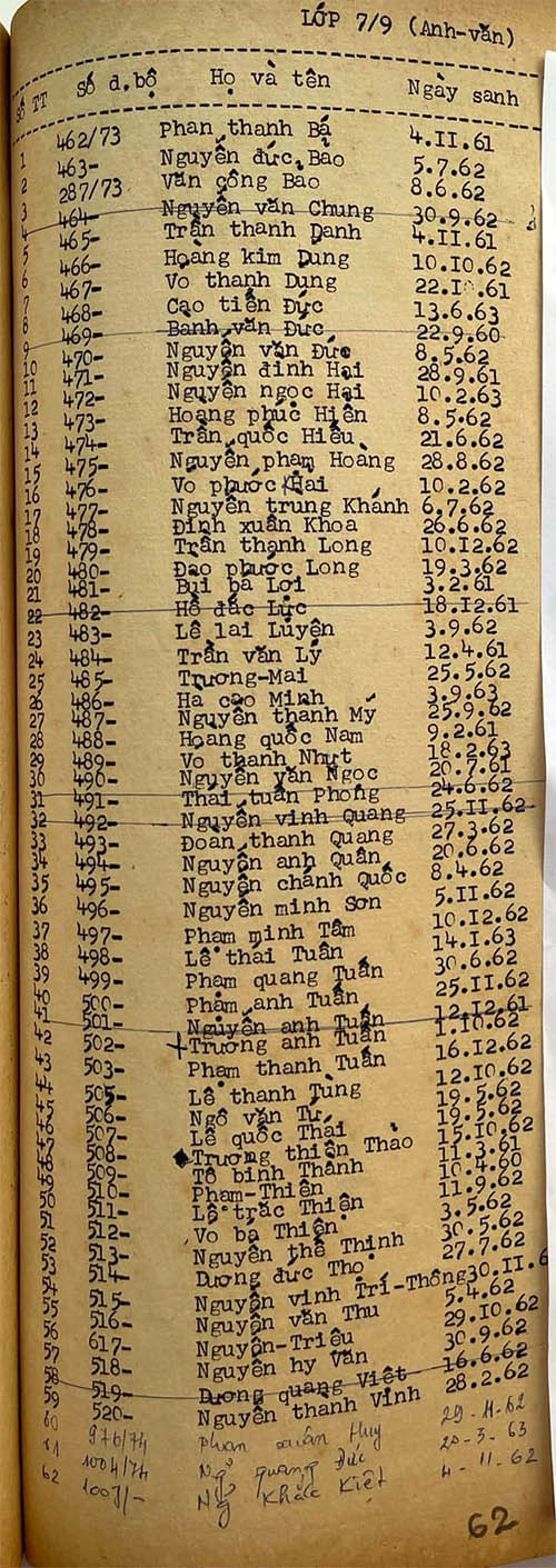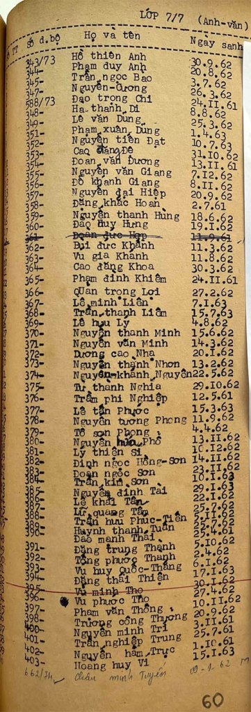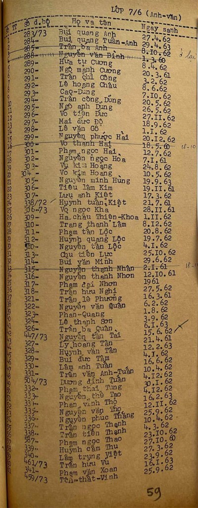 Danh sách học sinh các lớp trong năm học 1974-75 tại trường trung học Petrus Trương Vĩnh Ký Danh sách các lớp 7 Lớp 7/1 Lớp 7/2 Lớp 7/3 Lớp 7/4 Lớp 7/5 Lớp 7/6 Lớp 7/7 Lớp 7/8 Lớp 7/8 (Tiếp theo) Lớp 7/9 Lớp 7/10 Share this: Click to share on X (Opens in new window) X Click to share on Facebook (Opens in new window) Facebook Like Loading...