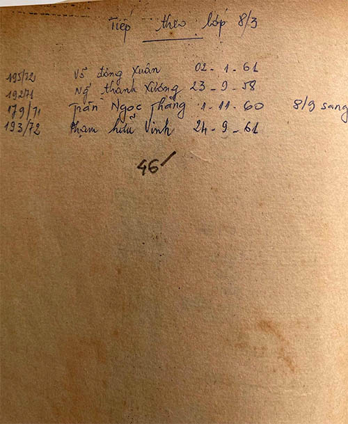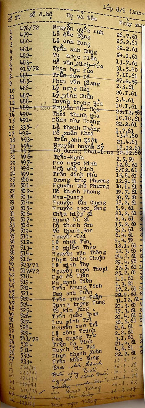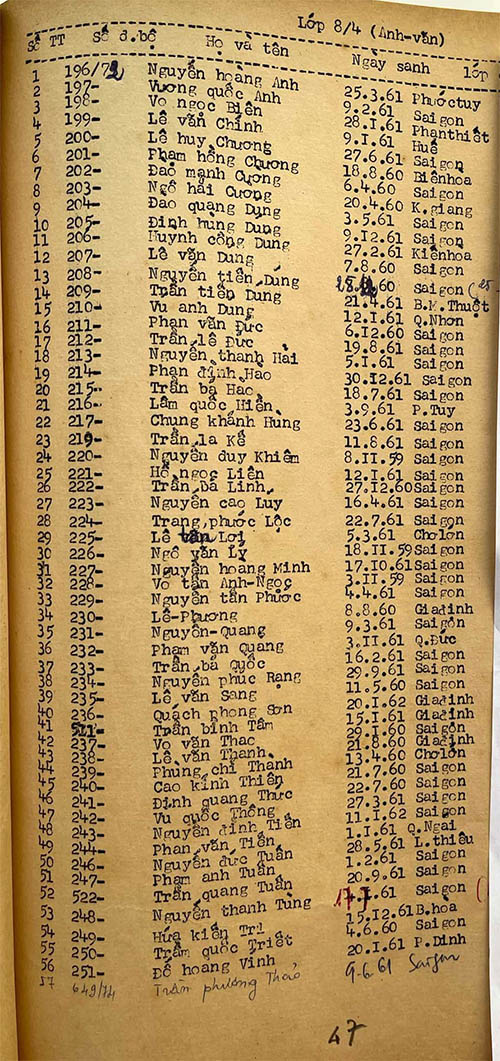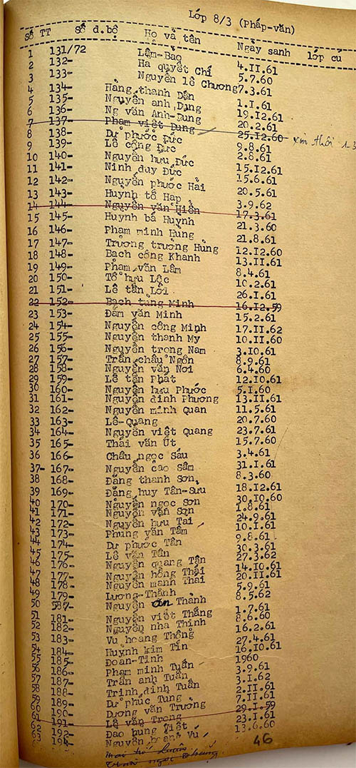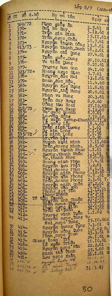 Danh sách học sinh các lớp trong năm học 1974-75 tại trường trung học Petrus Trương Vĩnh Ký Danh sách các lớp 8 Lớp 8/1 Lớp 8/2 Lớp 8/3 Lớp 8/3 (Tiếp theo) Lớp 8/4 Lớp 8/5 Lớp 8/6 Lớp 8/7 Lớp 8/8 Lớp 8/9 Lớp 8/10 Share this: Click to share on X (Opens in new window) X Click to share on Facebook (Opens in new window) Facebook Like Loading...