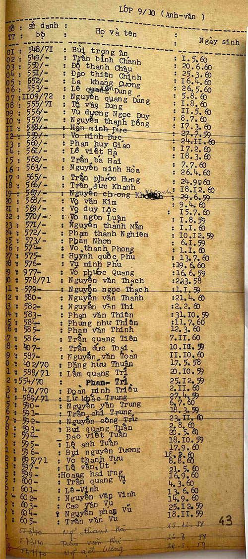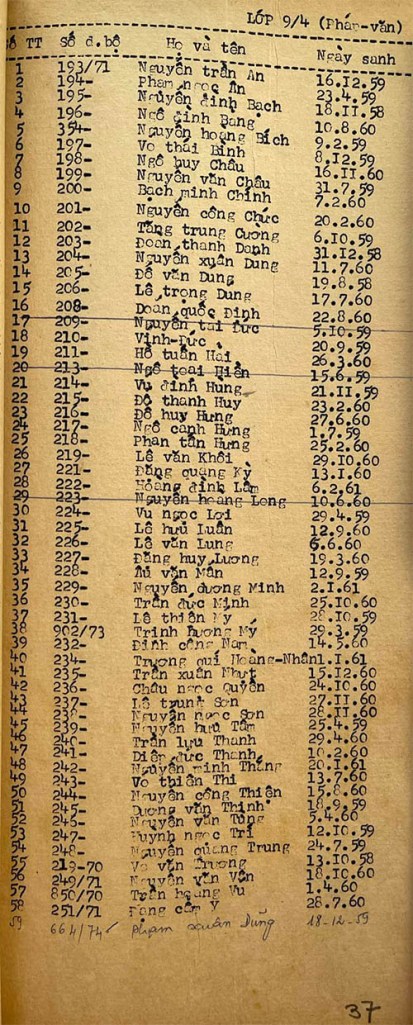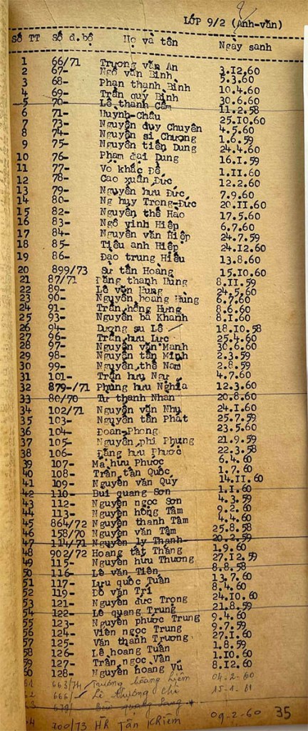 Danh sách học sinh các lớp trong năm học 1974-75 tại trường trung học Petrus Trương Vĩnh Ký Danh sách các lớp 9 Lớp 9/1 Lớp 9/2 Lớp 9/3 Lớp 9/4 Lớp 9/5 Lớp 9/6 Lớp 9/7 Lớp 9/8 Lớp 9/9 Lớp 9/10 Share this: Click to share on X (Opens in new window) X Click to share on Facebook (Opens in new window) Facebook Like Loading...
