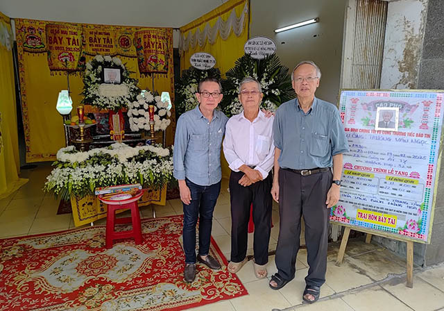 3 cựu học sinh lớp 12C Petrus Ký niên khóa 1970-71 viếng thầy Ngọc ở lễ tang ngày 22/2/2025