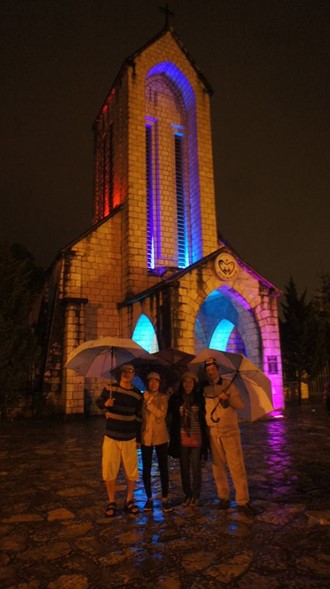 Buổi tối một mình lang thang từ con đường dốc đỗ xuống góc ngã tư, nơi có nhà thờ đá Sa Pa.