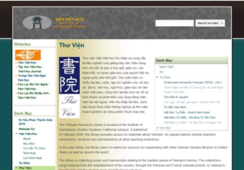Liệt kê ở đây mặc dù Viện Việt Học không chỉ chuyên chú vào sách báo Miền Nam, nhưng có lưu giữ một số tự điển, sách sử xưa và cận đại, và nhiều loại sách cho biên khảo giá trị, lại cho phép tải xuống. Rất nên bỏ thì giờ vào lục kiếm và tự để lạc vào một thứ Văn Miếu trên thế giới Ảo. Đây có lẽ là trang mạng hiếm hoi còn duy trì lối viết có gạch ngang (hyphen) giữa các danh từ kép mà ít ai trong chúng ta còn xử dụng.