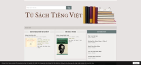 Tủ Sách Tiếng Việt. Một cách chủ quan tất nhiên, đây vẫn là Web site tôi thích nhất vì cách trình bầy trang nhã, đơn giản song ngăn nắp, đúng tiêu chuẩn của một văn khố. Trang mạng này lại sẵn có chức năng Tìm kiếm, nên việc truy tầm xem có cuốn sách hay tác giả mình muốn kiếm được dễ dàng. Đặc biệt, khách viếng không cần phải đăng ký mới đuợc vào đọc sách, và có quyền tải xuống bất cứ cuốn nào mình thích, vô hạn định. Tủ sách lại hoàn toàn chuyên chú vào loại sách báo scan lại từ bản gốc (giấy), và hầu hết là sách xuất bản tại Miền Nam trước 1975. Đây là một trang bảo lưu sách báo xưa giống như một ngôi chùa hay thánh đường: luôn mở rộng cửa, ai vào cũng được, muốn lấy bao nhiêu sách cũng chẳng ai thắc mắc, theo giõi, làm khó dễ.