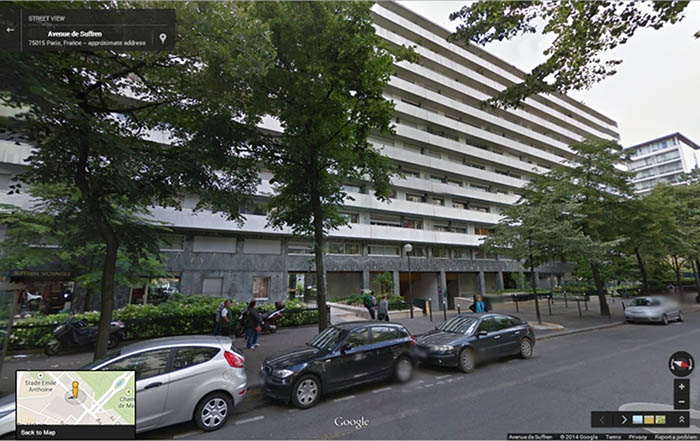 24 rue de Sufferen, nhìn hướng chính Bắc là tháp Eiffel cách 400m. Nguồn: Google.