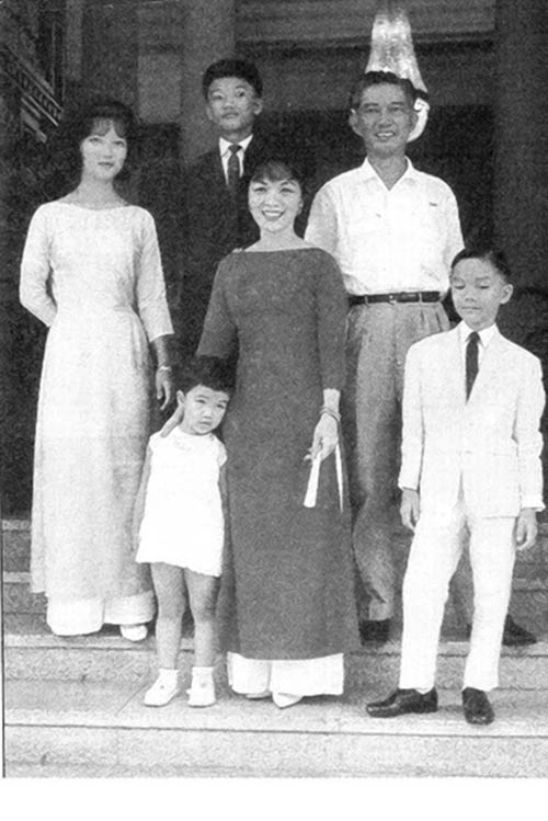 Gia đình bà Nhu (Từ trái): Ô. Trần Văn Chương, B. Thân Thị Nam Trân, B. Trần Thị Lệ Chi, B. Trần Thị Lệ Xuân, Ô. Trần Văn Khiêm. Nguồn OntheNet