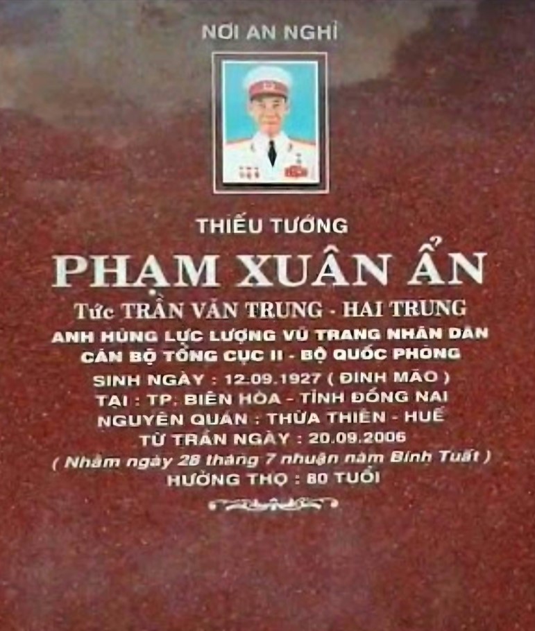 “Nhắc đến Phạm Xuân Ẩn, người ta nhớ đến một phóng viên thông mình, lỗi lạc, ban ngày cần mẫn làm việc cho Time, ban đêm làm gián điệp với nhiều bí danh như ‘X6’, ‘Trần Văn Trung’ hoặc ‘Hai Trung’ và âm thầm gởi mật mã, tài liệu cho Việt Cộng đang quanh quẩn ở các khu rừng ngoại thành Sài-Gòn. Ông cúc cung phục vụ và hết lòng cung cấp bí mật quân sự cho chế độ cộng sản, khiến họ ‘như đang ngồi trong phòng tham mưu quân sự Mỹ’ và sau ngày non sông gom về một mối thì nhận được cái kết quả đắng chát”