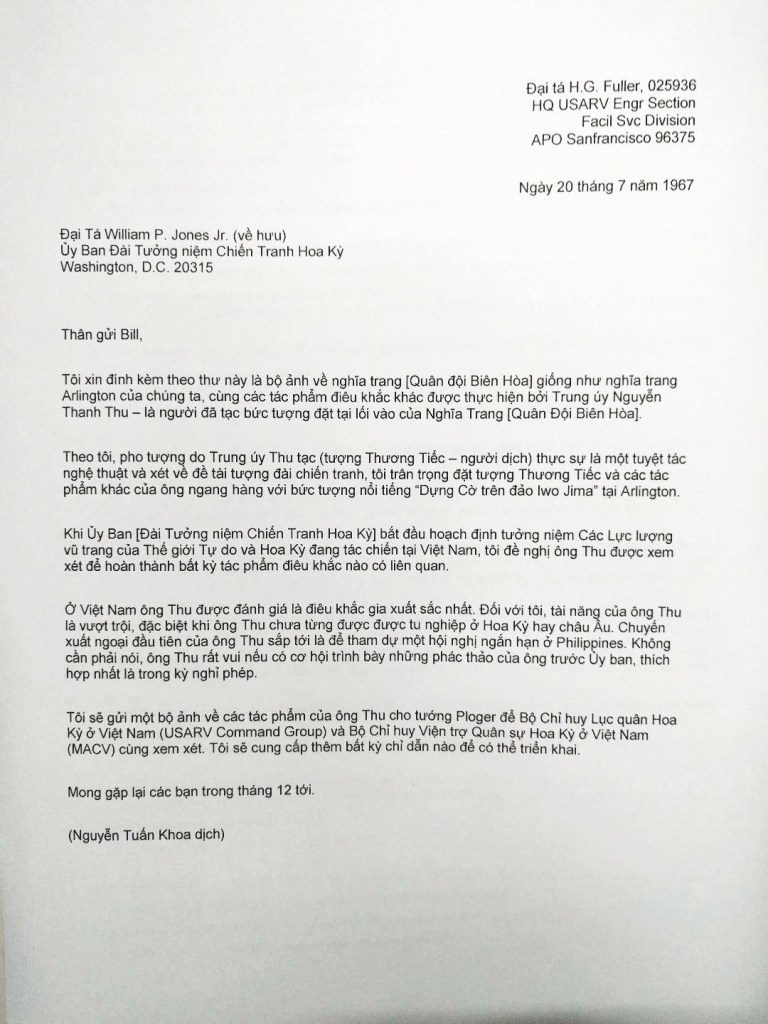 Mỗi năm, tháng tư lại về và gợi lên những nỗi niềm tiếc nhớ xa xôi, quê hương đã ngàn trùng cũng như xót thương vô vàn những người thua cuộc, tài bất trùng thời, trong đó có điêu khắc gia, đại úy Nguyễn Thanh Thu. Những ngày cuối đời, xin cầu mong cho ông được bình yên giữa cuộc đời nhiều giông bão.