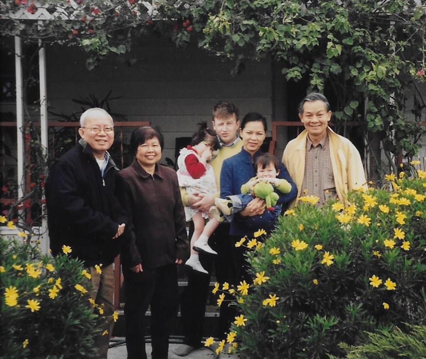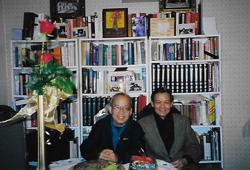 Ông bà Đỗ Ngọc Yến (trái) đến chơi nhà tác giả, trong dịp gia đình con gái tác giả từ Pháp sang.