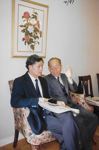 Ông bà Đỗ Ngọc Yến (trái) đến chơi nhà tác giả, trong dịp gia đình con gái tác giả từ Pháp sang.