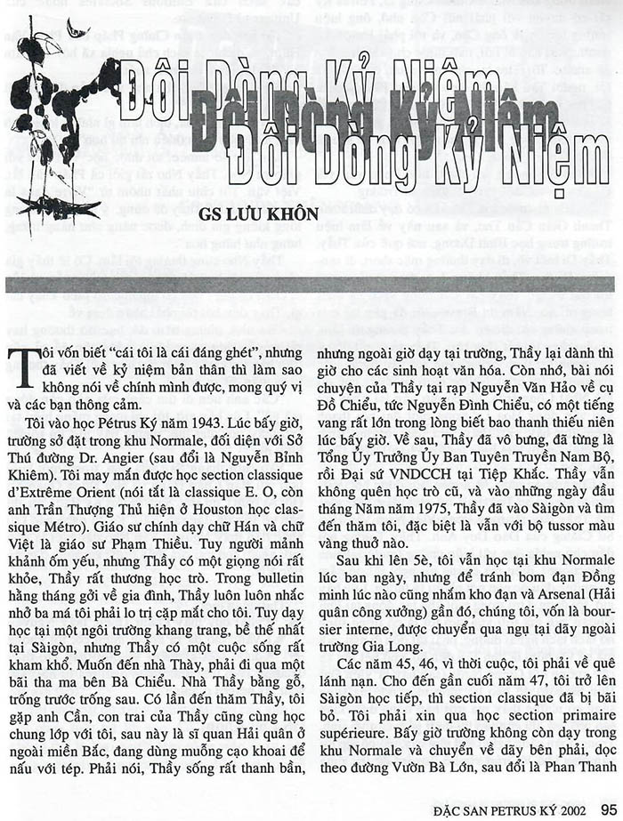 Đôi dòng kỷ niệm GS Lưu Khôn (Nguồn: Đặc san Petrus Ký 2002, hội Ái hữu CHS Petrus Ký Bắc California) Share this: Share on X (Opens in new window) X Share on Facebook (Opens in new window) Facebook Like Loading...