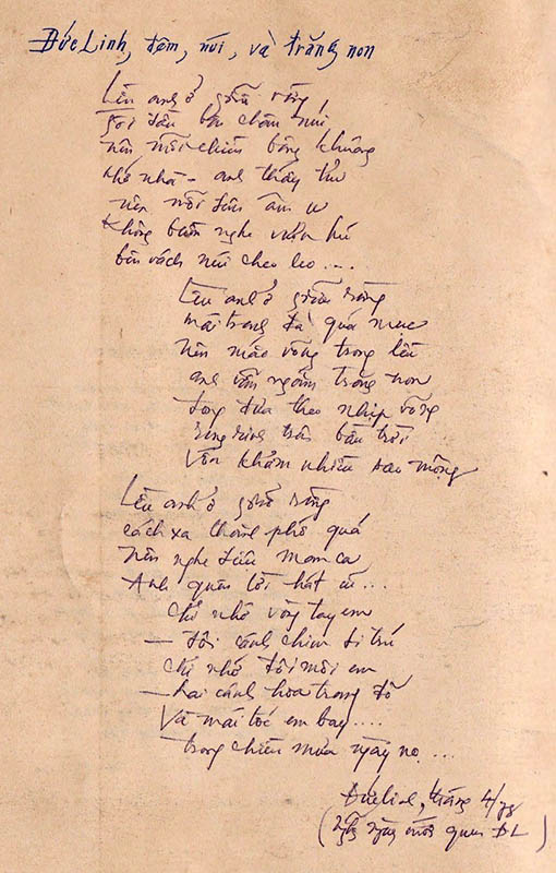 Nhân dịp viết về khoá 68-75 tôi có hỏi Luân về những bài thơ năm xưa. May mắn thay Luân còn giữ được bản chính của các bài thơ đó. Xin được giới thiệu những bài thơ của Phạm Kim Luân viết ra cách đây gần nửa thế kỷ.