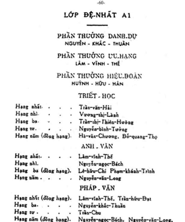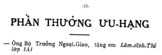 Ở bậc trung học đệ nhị cấp, tôi vẫn tiếp tục là một học sinh xuất sắc. Cuối năm lớp Đệ Nhứt A1 (niên khóa 1959-1960), tôi lãnh Phần Thưởng Ưu Hạng như trong 3 tấm ảnh ngay bên dưới đây cho thấy rõ: