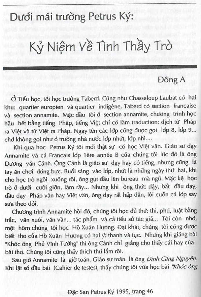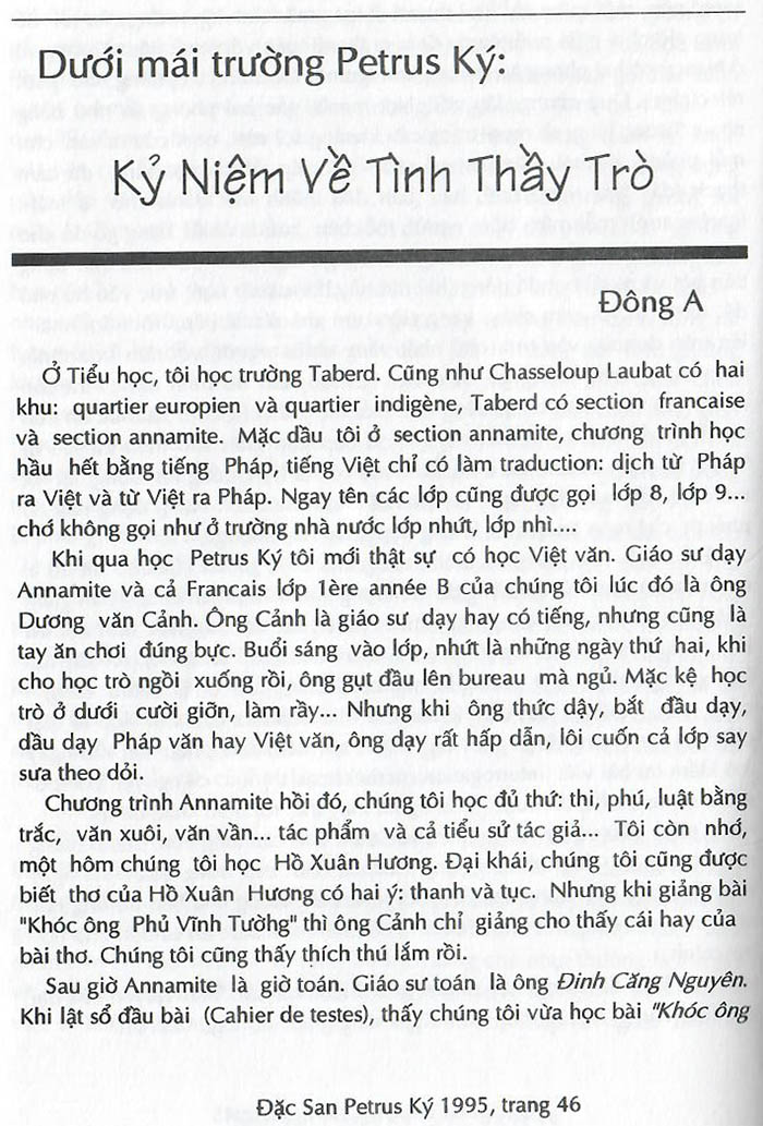 Dưới mái trường Petrus Ký: Kỷ niệm về tình thầy trò