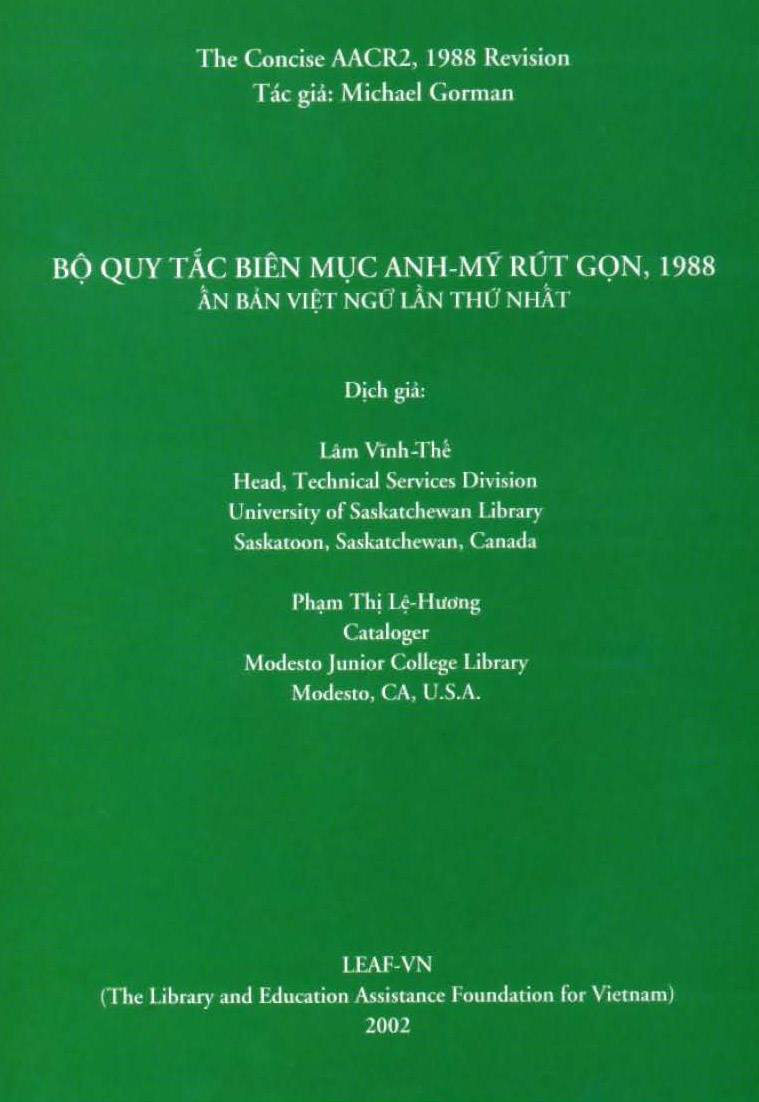 Bộ Quy Tắc Biên Mục Anh-Mỹ Rút Gọn, 1988