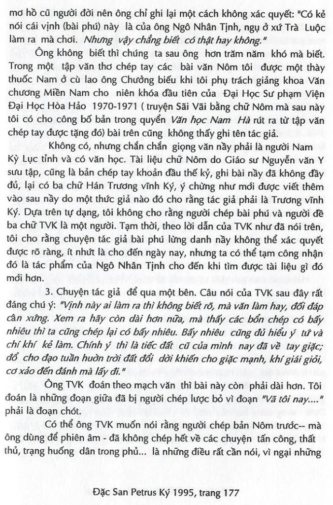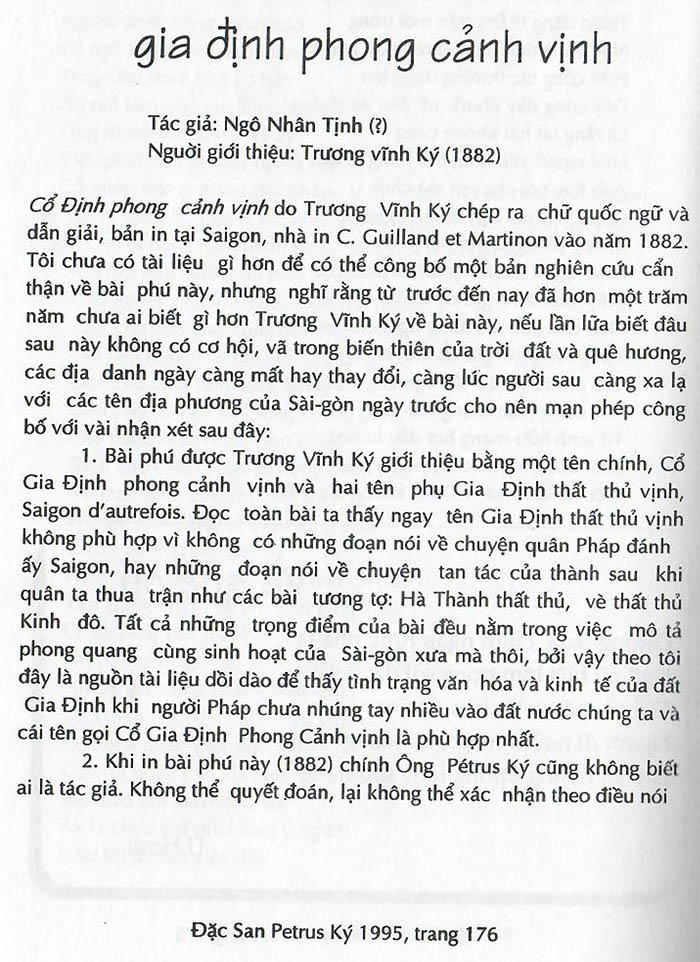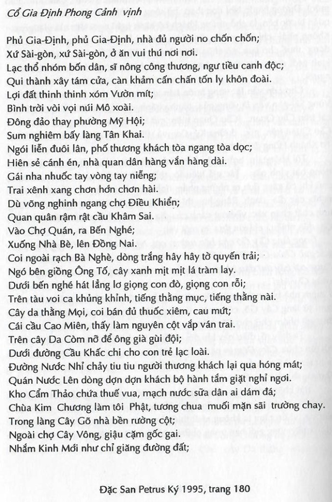 Gia Định phong cảnh vịnh Tác giả: Ngô Nhân Tịnh (?) – Người giới thiệu: Trương Vĩnh Ký (nguồn: ĐS Petrus Ký Houston 1995) Share this: Share on X (Opens in new window) X Share on Facebook (Opens in new window) Facebook Like Loading...