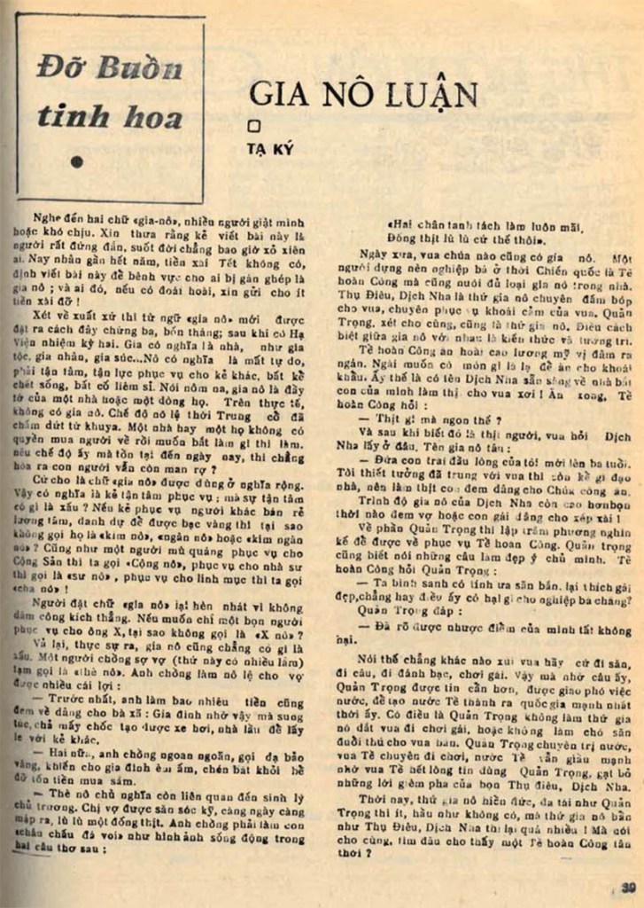Gia nô luận Tạ Ký (nguồn: tuần báo Đời số 116, ngày 06-01-1972) Share this: Click to share on X (Opens in new window) X Click to share on Facebook (Opens in new window) Facebook Like Loading...