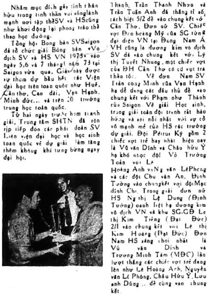 Giải bóng bàn “Vô địch Sinh Viên và Học Sinh Việt Nam 1973” (Nguồn : Sóng Thần số 0451 ngày 25/01/1973) tmc sưu tầm SongThan_0451 25JAN 1973.pdf Share this: Click to share on X (Opens in new window) X Click to share on Facebook (Opens in new window) Facebook Like Loading...