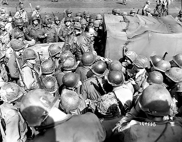 Bing Crosby signs autographs for American infantry troops in France, 1944. (Photo by © CORBIS/Corbis via Getty Images)