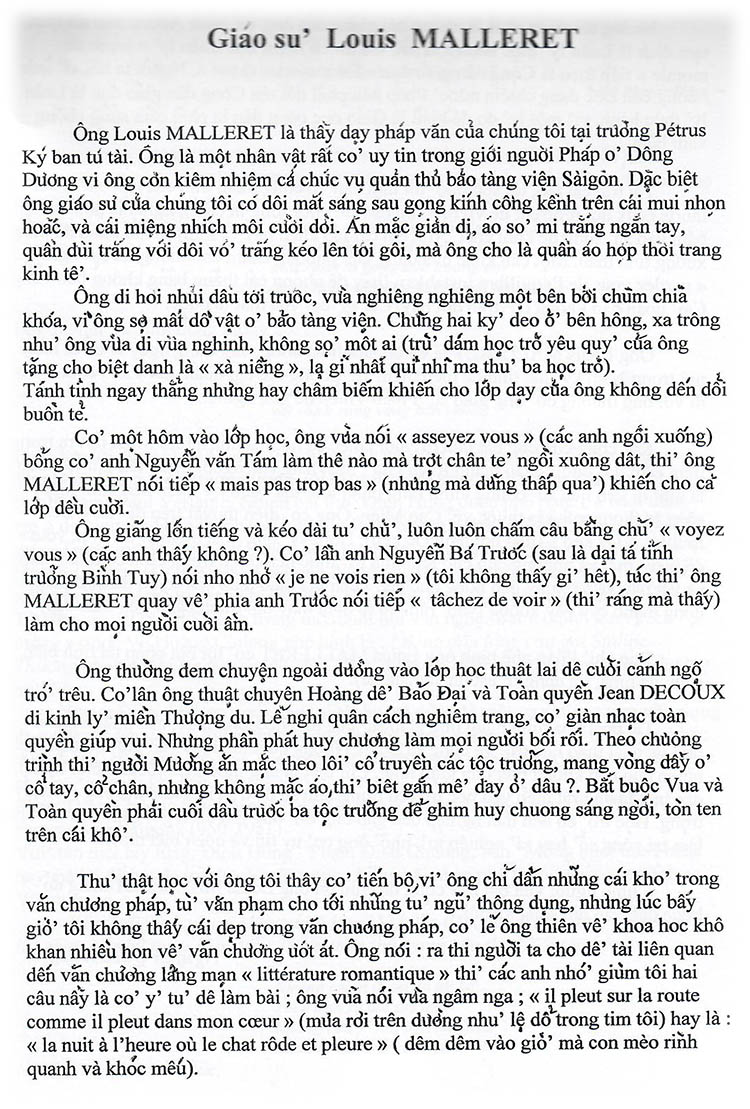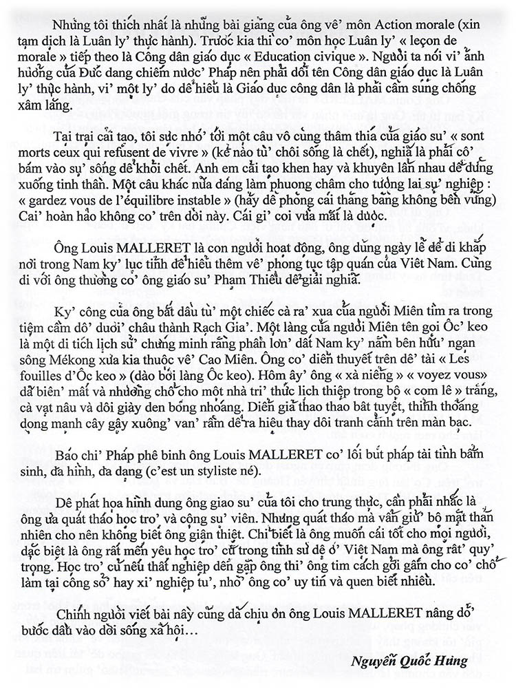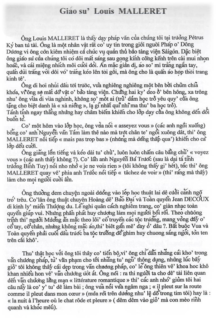 Giáo sư Louis Malleret Nguyễn Quốc Hưng (Nguồn: Nội san số 62 – Hè 2012, Hội Ái hữu Trung học Petrus Trương Vĩnh Ký tại Pháp) Share this: Share on X (Opens in new window) X Share on Facebook (Opens in new window) Facebook Like Loading...
