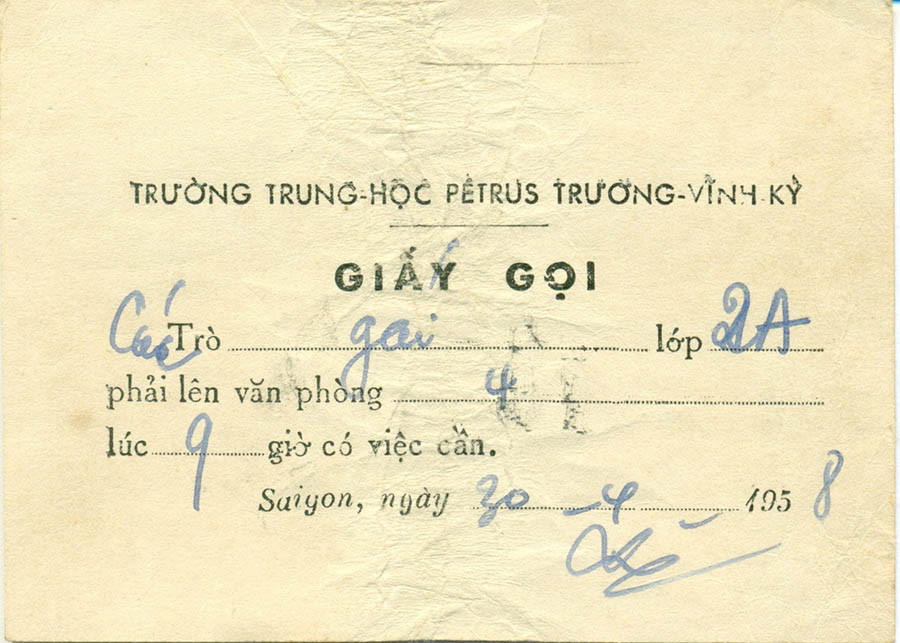 Trường Trung học Petrus Trương Vĩnh Ký Giấy Gọi (Nguồn: FB Loc Nguyen Dai Hung) Share this: Share on X (Opens in new window) X Share on Facebook (Opens in new window) Facebook Like Loading...