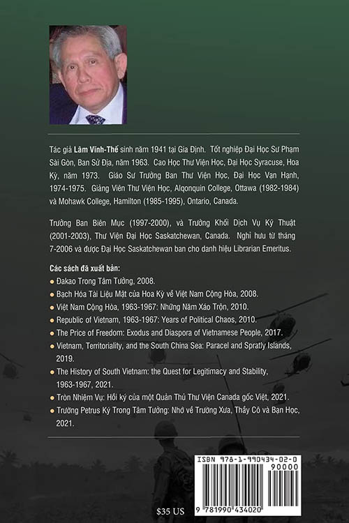 Chúng tôi rất hân hạnh giới thiệu đến bạn đọc tác phẩm nghiên cứu công phu của tác giả Lâm Vĩnh-Thế về Quân Lực Việt Nam Cộng Hoà (QLVNCH). Là cựu Trưởng Ban Thư Viện Học của Đại học Vạn Hạnh trước năm 1975, và Trưởng Khối Dịch Vụ Kỹ Thuật của Thư Viện Đại học Saskatchewan ở Canada vào lúc về hưu, tác giả Lâm Vĩnh-Thế đã xuất bản tác phẩm “Việt Nam Cộng Hòa, 1963-1967: Những Năm Xáo Trộn” (ấn bản tiếng Anh với tựa đề “History of South Vietnam: the Quest for Legitimacy and Stability, 1963-1967” do Nhà xuất bản Routledge, Anh Quốc, xuất bản năm 2021), hiện nay là công trình nghiên cứu duy nhất về giai đoạn đặc biệt này trong lịch sử Việt Nam Cộng Hoà (VNCH).