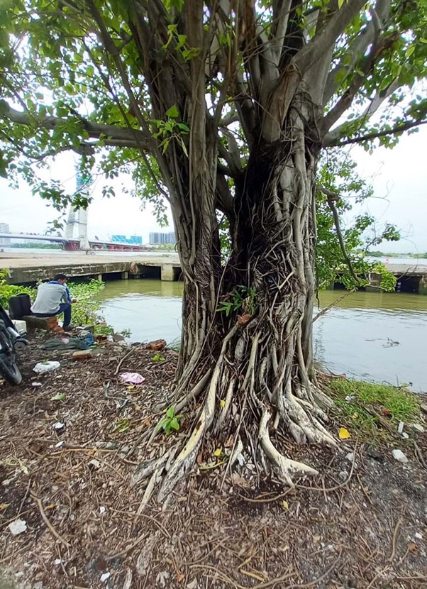 Một cây đa lâu năm bên cầu tàu gần công trường cầu Thủ Thiêm 2 (chụp 8.6.2021)
